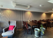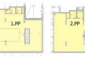 The space is on the ground floor equipped as a cafe and on the 1st floor as an office and a retail space with clothing. The space has two showers and four toilets. It can be rented as a whole, or divided into two parts with one common entrance. Possibility of renting as a retail space, office or café.