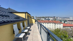 The air-conditioned completely renovated 3- bedroom maisonette for sale in the Old Town is situated on the 6th and 7th floors (7) in the superstructure of an apartment building with an elevator. The apartment is very well designed. The lower floor consists of an entrance hall, a spacious living room connected to a fully equipped kitchen and dining area, one separate room, a bathroom with shower and toilet and one balcony. On the upper floor there are two separate bedrooms, a large bathroom with bath, two sinks and a toilet. The whole apartment has underfloor heating, own gas boiler and air conditioning. On the upper floor there is access to a spacious terrace with a view of the city (31m2).