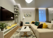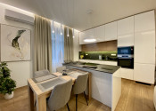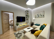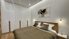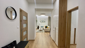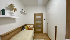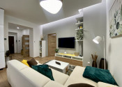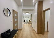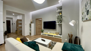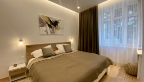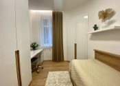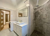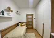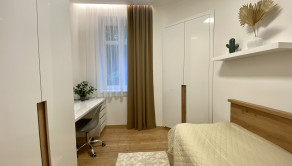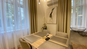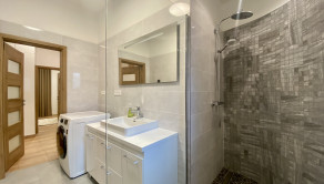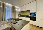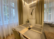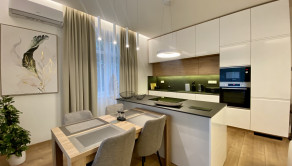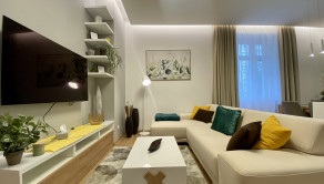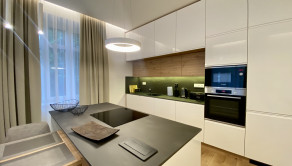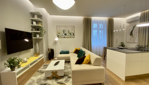 Apartment consists of a large entrance hall with built-in wardrobes, a living room connected to a fully equipped kitchen and dining area, two separate impassable rooms, a bathroom with shower and a separate toilet. The apartment is completely tastefully and modernly furnished, air conditioned with plenty of storage space, overlooking the courtyard. The cellar in the basement of the house belongs to it. It is brand new, not yet inhabited by anyone. Energies including internet and KTV (150 EUR / month) are not included in the rent. Parking for one car possible in the backyard.
