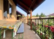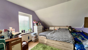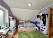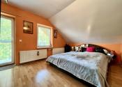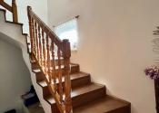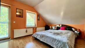 The house consists of a living area on the first floor, which consists of an entrance hall with storage space, a spacious living room connected to a fully equipped kitchen and dining room, a bathroom with a shower and a separate toilet. On the second floor there are three separate bedrooms and a bathroom with a bathtub and toilet. The master bedroom has access to a balcony with a view of the front of the house and the surrounding greenery. The house has a partial basement, heating is provided by an electric boiler. It is also possible to heat with wood. The house has municipal sewage.