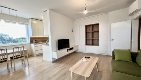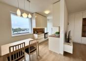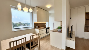 Beautiful 2- bedroom apartment for sale in the new building Rezidencia Jánošíková is located on Športova Street in Dunajská Lužná (approval in 2020). The usable area of the apartment is 78.67 m2 plus a large terrace of 91.63 m2 plus a basement of 15.49 m2. The apartment is located on the 4th floor (out of 4) in an apartment building with an elevator. The orientation of the apartment is southwest. It is modern and well-furnished (partially furnished). The location of the apartment offers nice views of the surroundings.