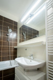 The apartment consists of an entrance hall with storage space, a living room with access to a loggia, a separate kitchen with access to a balcony, a master bedroom with a double bed, another room, a bathroom and a toilet. The bright and cozy interior of the apartment is ready to move in. Floating floors and plastic windows contribute to the modern look of the apartment. The equipment includes 2 air conditioning units, internet, security doors, quality furniture and fully furnished rooms. The kitchen is fully equipped - there is a dishwasher, stove, refrigerator, microwave. The apartment has a loggia and a balcony - an ideal space for relaxation with a view of the quiet surroundings. The apartment also has a cellar, which provides additional storage space. The sanitary facilities are practically designed: a bathroom with a bathtub, a separate toilet, a washing machine and a dryer of course. The apartment is centrally heated, which guarantees comfort throughout the year. Parking is public and problem-free in front of the apartment building.