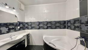 The apartment consists of an entrance hall with a built-in wardrobe, a spacious living room connected to a fully equipped kitchen with access to a loggia, two separate bedrooms, a bathroom with a bathtub and a toilet. It is freshly painted and is sold only partially furnished with built-in furniture. It has installed external blinds.