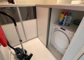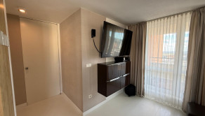 The apartment consists of an entrance hall with built-in wardrobes, a spacious living room connected to a fully equipped kitchen and dining area, a master bedroom, two separate non-passing rooms, a storage room, a bathroom with a bathtub, a shower and a separate toilet. It is air-conditioned. The apartment has a large amount of storage space and is rented fully furnished and equipped. It comes with a balcony, a cellar (by agreement) and a parking space for two cars in the underground garage. There is a possibility to charge an electric car.