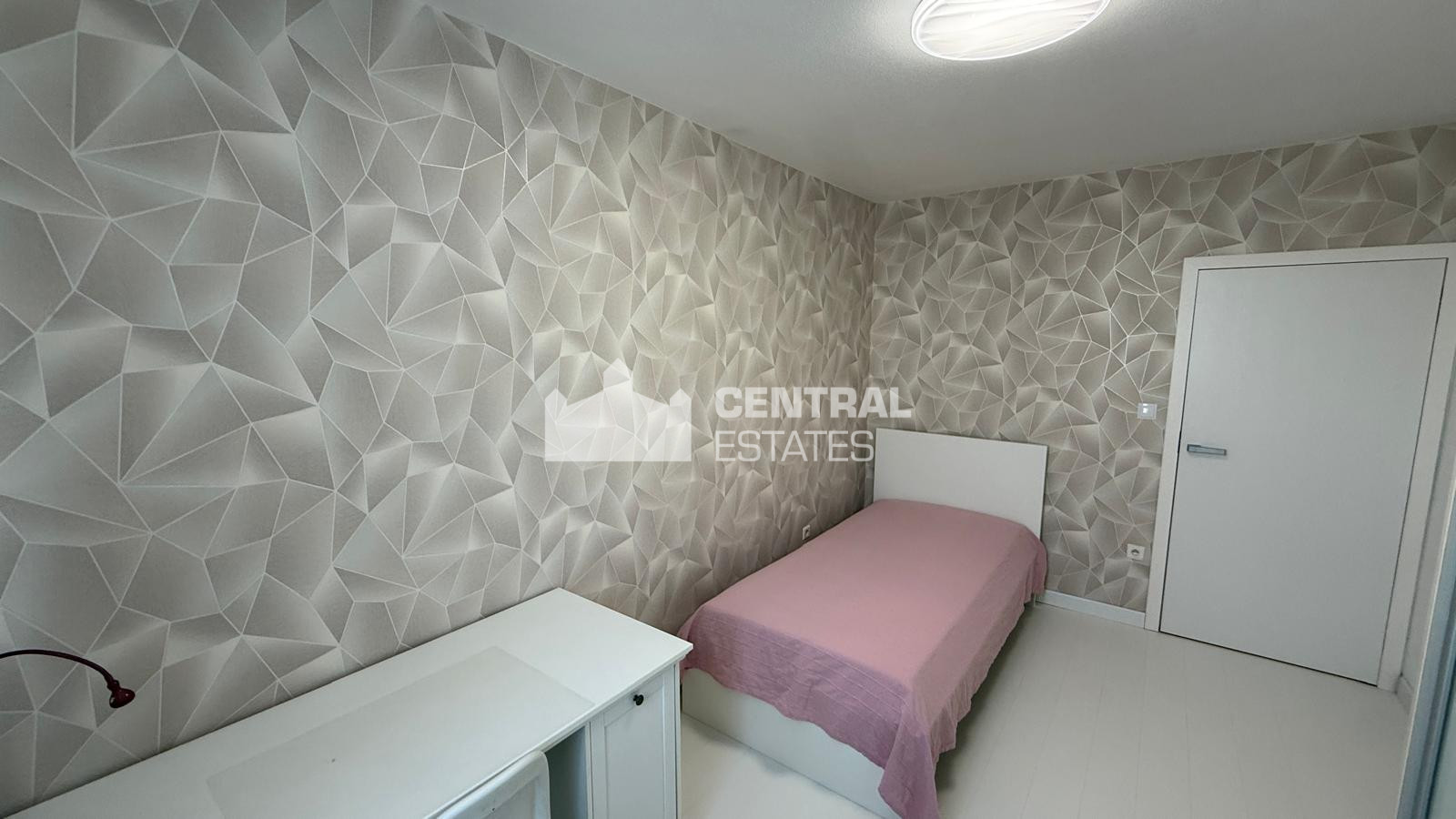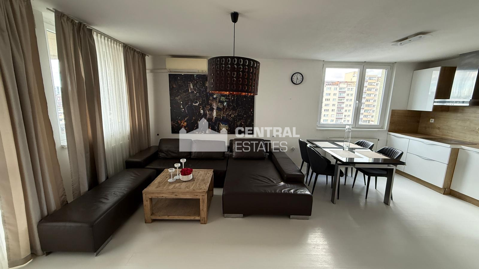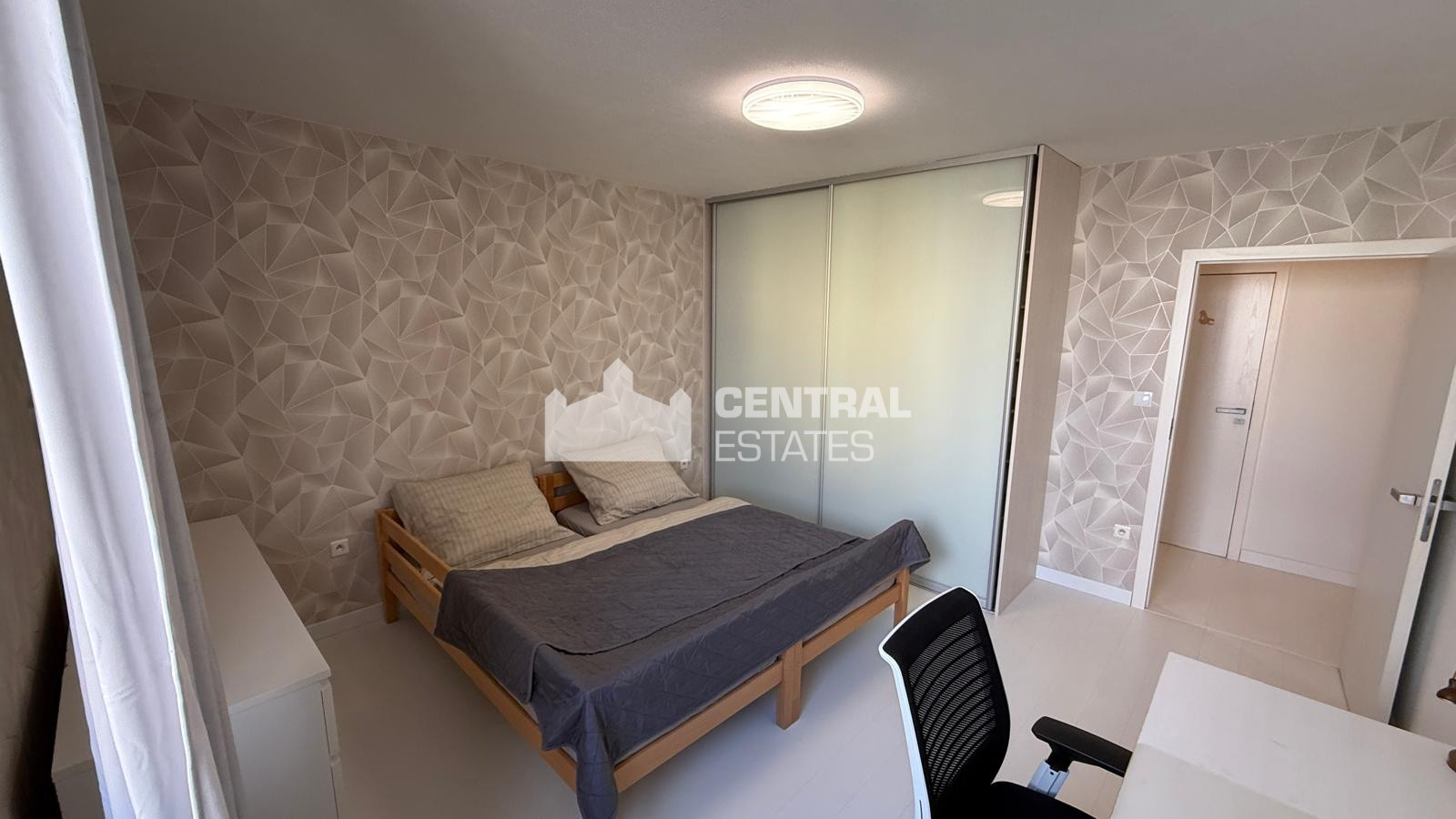 Central Estates offers you a large modern 4-room apartment for rent in Bratislava - Karlova Ves district. The apartment is located on the 8th floor (out of 20) in a new building with an elevator. The usable area of the apartment is 109.71 m2 plus a balcony of 8.91 m2.