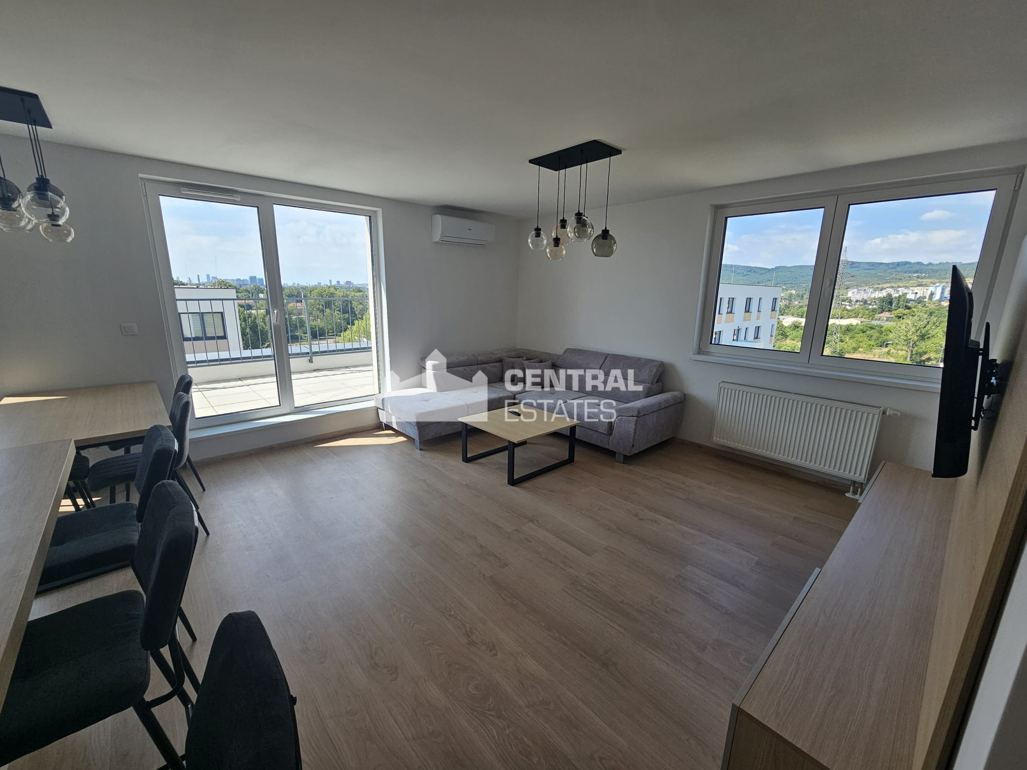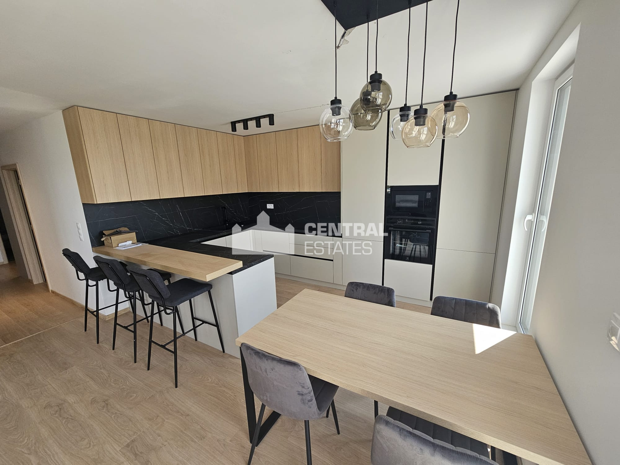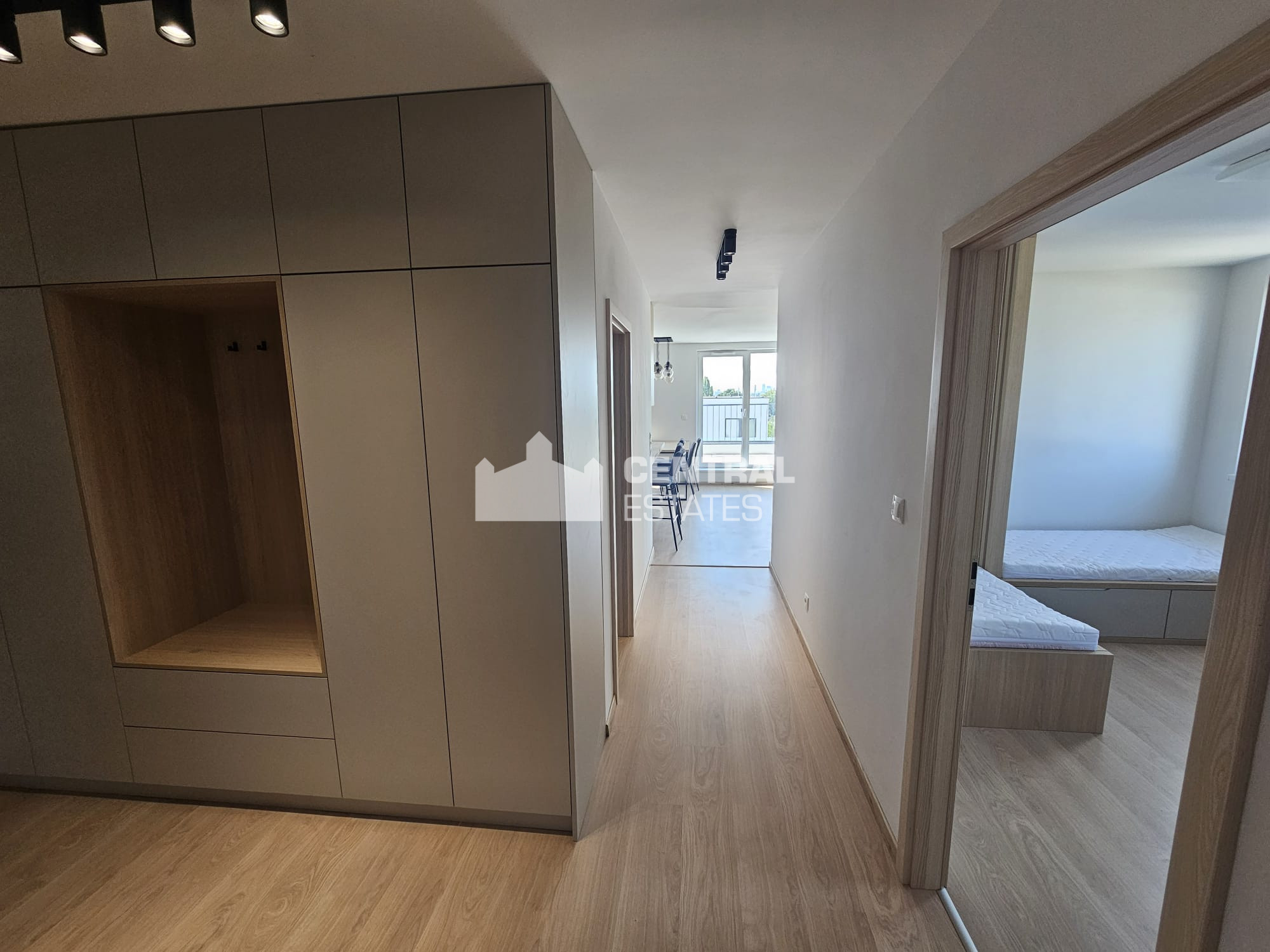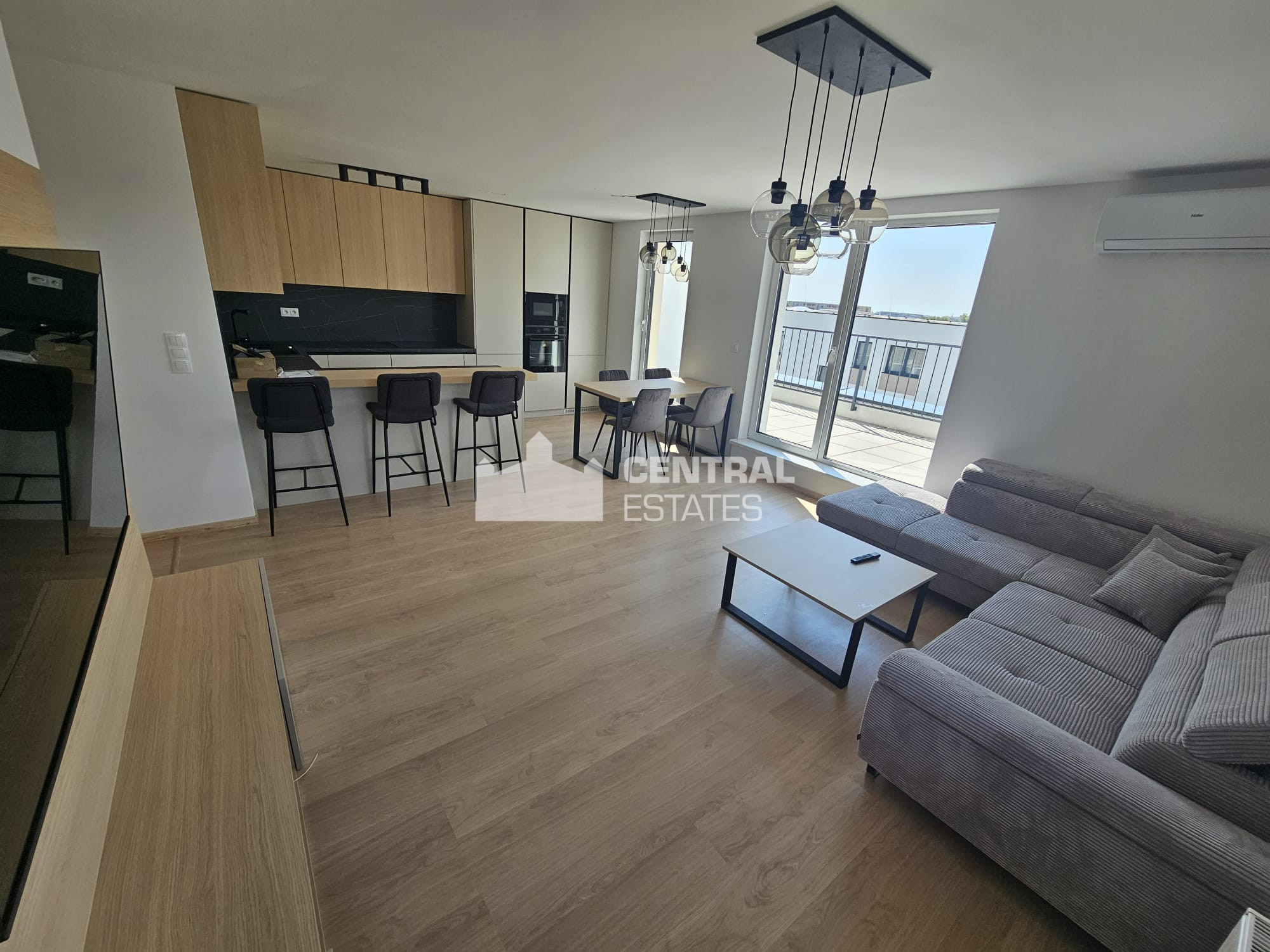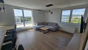Beautiful 2-room apartment for rent in Rača is located on the 7th floor (out of 7) in the new Rendez Vous building. The usable area of the apartment is approximately 90 m2 plus a terrace.