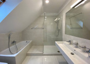 Dom pozostáva zo vstupnej chodby, priestrannej obývacej izby s krbom, samostatnej plne vybavenej kuchyne a jednej izby (pracovňa, hosťovská) na spodnom podlaží, 4 samostatných spální na vrchnom podlaží, 2 kúpeľní (vaňa, sprchovací kút) a 2 samostatných toaliet. K domu prislúcha balkón s výstupom z hlavnej spálne, veľká prekrytá terasa, záhrada a garáž pre dve autá. K dispozícii sú ešte ďaľšie parkovacie státia pred garážou a na ulici. Dom je plne klimatizovaný, zabezpečený alarmom a má krásnu upravenú záhradu s automatickým polievaním. V cene nie sú zahrnuté energie podľa reálnej spotreby.