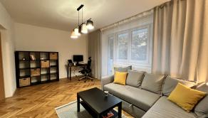 Staromestský 3- izbový byt na prenájom v Starom meste je situovaný na 2. (4) poschodí zrekonštruovaného tehlového bytového domu bez výťahu. Byt pozostáva zo vstupnej chodby, samostatnej plne vybavenej kuchyne, obývacej izby, (19.5m2) z ktorej je vstup do menšej izby (10.7m2), väčšia samostatná izba (17m2), šatníka, kúpeľne so sprchovacím kútom a samostatnej toalety. Disponuje vlastnou vykurovacou jednotkou - plynovým kotlom. K bytu prislúcha veľká lodžia (14.22m2) a murovaná pivnica 4m2. Orientovaný je na JZ, takmer všetky okná má orientované do tichého dvora. Po dohode je možné doplniť nábytkom. Energie (250 Eur/ mesačne vrátane internetu) nie sú zahrnuté v cene nájmu.