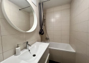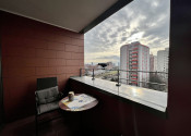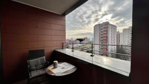 Pekný 2-izbový byt na prenájom v Nobom meste je situovaný v bytovom dome Manhattan. Byt pozostáva zo vstupnej predsiene, priestrannej obývacej izby prepojenej s plne vybavenou kuchyňou, jednej spálne, šatníka, kúpeľne s vaňou a samostatnej toalety. Prenajíma sa kompletne zariadený a vybavený, je slnečný, s výhľadom na hrad a Kolibu. V byte je klimatizácia, vysokorýchlostný internet a TV Orange. K bytu prislúcha lodžia s posedením a výhľadom na hrad, garážové státie pre jedno auto a pivničná kobka. V cene nie sú zahrnuté energie (200 Eur/ mesačne), prenájom parkovacieho státia a pivničnej kobky (70 Eur/ mesačne). Domáce zviera za príplatok.