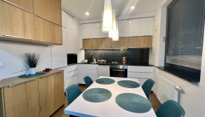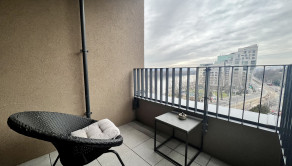 Krásny 2- izbový byt na prenájom v Starom meste je situovaný na 5. (7) poschodí v komplexe Zuckermandel s výťahom. Pozostáva zo vstupnej predsiene, obývacej izby prepojenej s kompletne vybavenou kuchyňou, samostatnej spálne s veľkým šatníkom a kúpeľne s vaňou a toaletou. Prislúcha k nemu lodžia s posedením a krásnym výhľadom na Dunaj a promenádu a parkovacie státie pre jedno auto v podzemej garáži. Byt je kompletne zariadený s množstvom úložného priestoru. V obývacej izbe je rozkladacia pohovka. Spálňa je orientovaná do tichého vnútrobloku. K cene je potrebné pripočítať poplatok za energie (230 Eur/ mesačne).