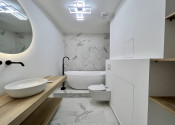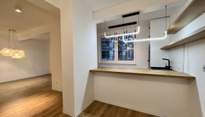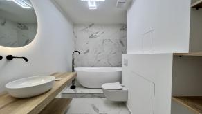 Luxusný 3- izbový mezonet na prenájom v Starom meste je situovaný na 1. a 2. poschodí (2) v novostavbe s výťahom. Byt pozostáva zo vstupnej haly, schodiska, priestrannej obývacej izby prepojenej s plne vybavenou modernou kuchyňou a jedálenskou časťou, dvoch samostatných spální, dvoch walk-in šatníkov, kúpelne s vaňou, ktorá je kompletne vybavená sanitou značky Villeroy&Boch a toalety. K bytu prislúcha veľká terasa (48m2), pivničná kobka a garážové parkovacie státie pre jedno auto. Byt pokrýva celé 2. poschodie, čiže je bez priamych susedov. Je svetlý, tichý (vo vnútornej časti bytovky) a má minimalistický moderny dizajn (inšpirácia Mykonos). Kuchyňa je plne vybavená elektrospotrebičmi AEG (myčka riadu, mikro, chladnička, indukčná doska, rúra). V byte je zabudovaná kombinovaná LG práčka so susičkou. V byte je klimatizácia a podlahové elektrické kúrenie. v cene nie sú zahrnuté energie (cca 250 Eur/ mesačne).