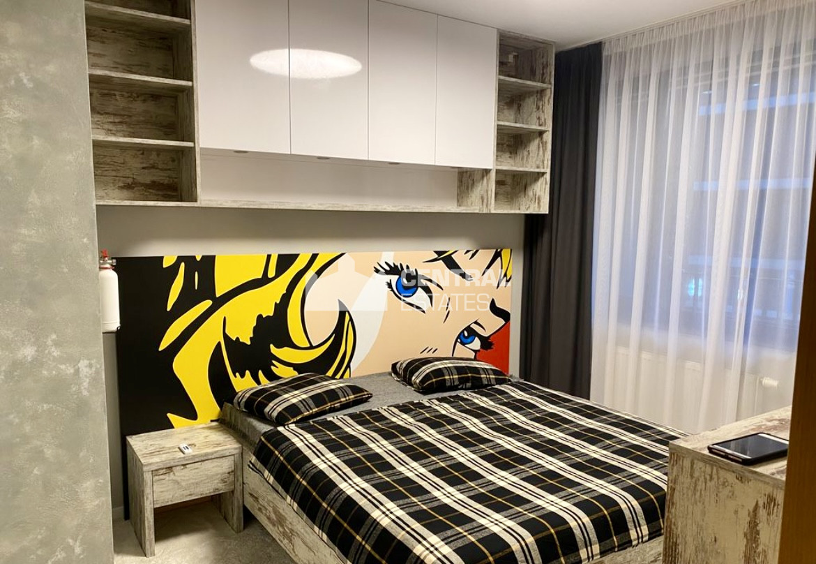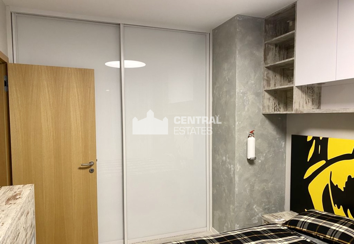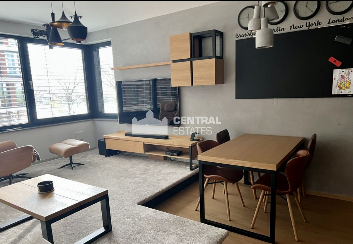 Moderný luxusne zariadený 2- izbový byt na prenájom v Starom meste je situovaný na 1. (7) poschodí v novostavbe Zuckermandel s výťahom. Pozostáva zo vstupnej predsiene, priestrannej obývacej izby prepojenej s plne vybavenou kuchyňou, spálne, kúpelne a toalety. Prislúcha k nemu lodžia s výhľadom na Dunaj a je možné si k nemu prenajať parkovacie státie pre jedno auto v podzemnej garáži a pivničnú kobku.