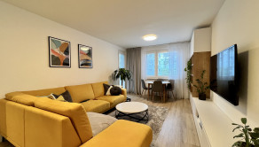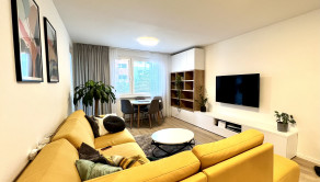 Veľmi pekný priestranný 3- izbový byt na prenájom v Ružinove je situovaný na 1. (4) poschodí bytového domu s výťahom. Byt pozostáva zo vstupnej chodby, priestrannej obývacej izby prepojenej s plne vybavenou kuchyňou, špajze, dvoch samostatných spální s úložnými priestormi, kúpeľne so sprchovým kútom a samostatnej toalety. K bytu prislúcha väčší balkón a pivničná kobka. Byt bol kompletne zrekonštruovaný a prenajíma sa plne zariadený (nábytok na mieru, kvalitné spotrebiče).