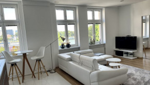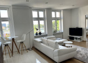 Exkluzívny slnečný 4-izbový byt na prenájom v Bratislave situovaný na 3. poschodí (5) v bytovom dome s výťahom. Pozostáva zo vstupnej chodby, obývacej izby prepojenej s plne vybavenou kuchyňou, troch samostatných spální, dvoch kúpeľní (vaňa a sprchovací kút), dvoch toaliet a bidetu. Byt je po rozsiahlej rekonštrukcii s prvkami funkcionalistickej architektúry a vysokými stropmi. Priestor bytu ponúka miestnosti na spoločné stretnutia, oddychovú zónu a zázemie pre prácu z domu. Byt sa prenajíma kompletne zariadený. Prislúcha k nemu balkón s výhľadom na Slavín a Staré Mesto.