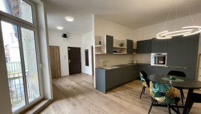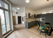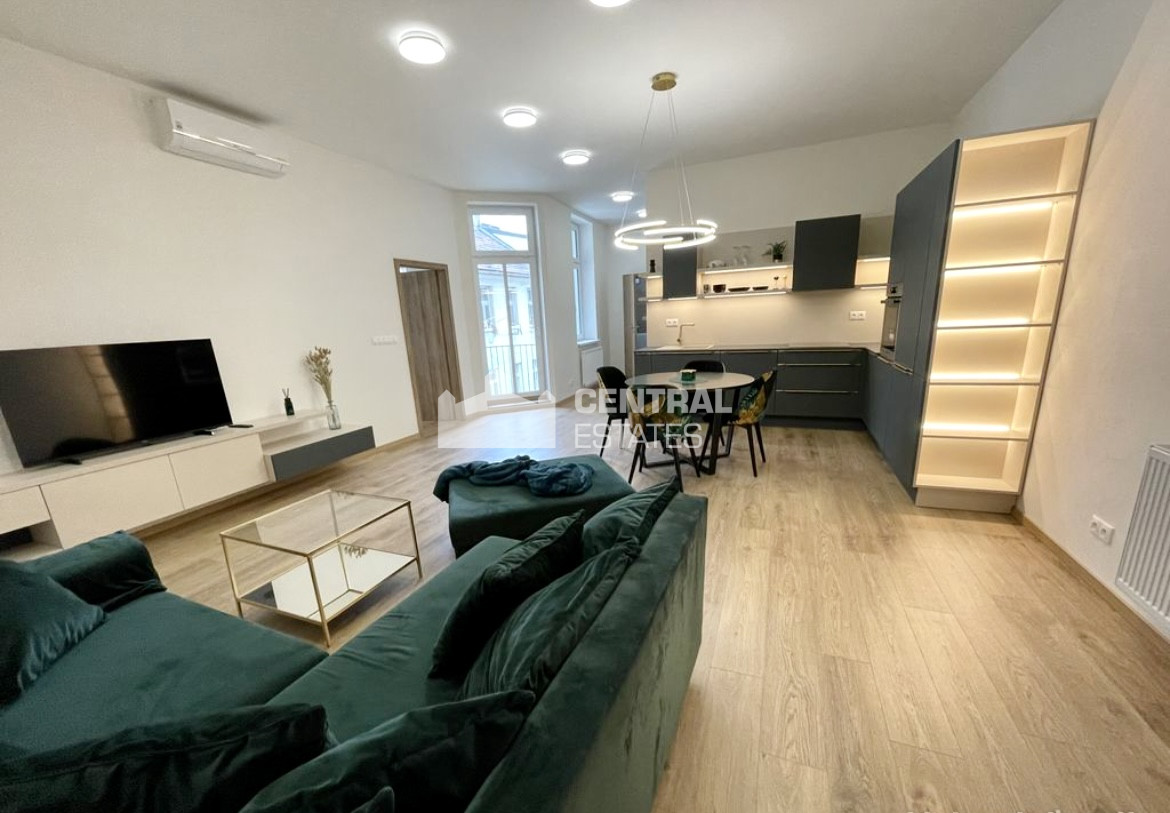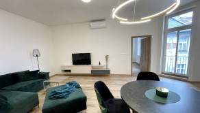Moderný štýlový staromestský 2- izbový byt na prenájom v Starom meste je situovaný v bytovom dome s výťahom. Pozostáva zo vstupnej predsiene, priestrannej obývacej izby prepojenej s plne vybavenou kuchyňou, spálne, šatníka, technickej miestnosti, kúpeľne so sprchovacím kútom a samostatnej toalety. K bytu prislúcha komora.