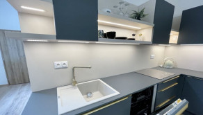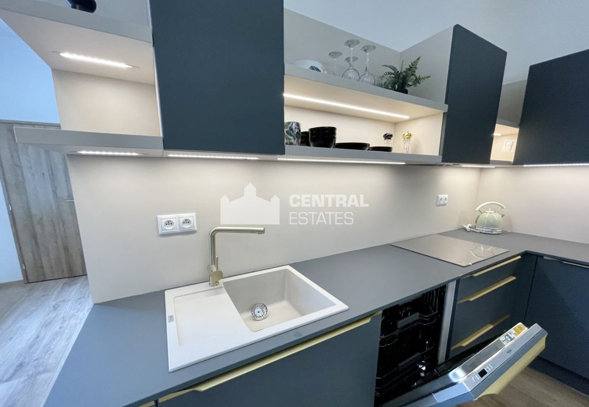 Byt prešiel celkovou rekonštrukciou a má nový nábytok na mieru. K vybaveniu bytu patrí umývačka riadu, elektrická rúra, televízor a práčka. Byt nebol nikdy obývaný, ide o prvý nájom.