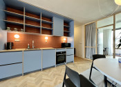 Kompletne zrekonštruovaný 3- izbový dizajnovy byt na prenájom v Starom meste je situovaný na 4. (6) poschodí v tehlovom bytovom dome s výťahom. Byt pozostáva zo vstupnej haly, priestrannej obývacej izby prepojenej s plne vybavenou kuchyňou a jedálenskou časťou, hlavnej spálne s manželskou posteľou a šatníkom, detskej izby/ pracovne, kúpeľne s vaňou a toalety. K bytu prislúchajú dve lodžie po oboch stranách. Jedna je menšia s výhľadom do ulice a druhá je veľká s výhľadom do vnútrobloku. Byt je veľmi svetlý, príjemný a klimatizovaný. Parkovanie je verejné v okolí domu.