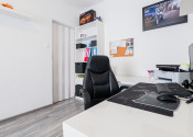 Dom pozostáva zo vstupnej predsiene, priestrannej obývacej izby prepojenej s plne vybavenou kuchyňou a jedálenskou časťou, pracovne, spálne, šatníka, kúpeľne so sprchovacím kútom a samostatnej toalety.