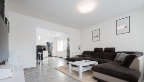 Dom je postavený z tehly a zateplený 5-kou polystyrénom. Prešiel kompletnou rekonštrukciou, ktorá zahŕňa aj rekonštrukciu elektroinštalácie. V dome sa nachádza alarm, plastové okná, bezpečnostné dvere, v izbách plávajúca podlaha, v chodbe a kúpeľni je dlažba.