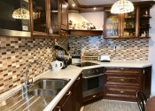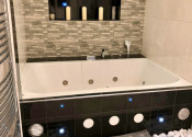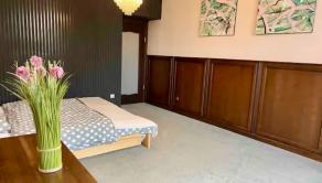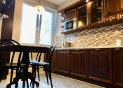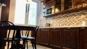 Úžitková plocha bytu je 105m2, je zariadený v rustiálnom šťýle.