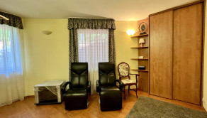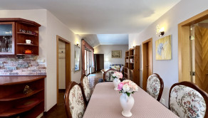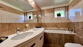 V celom dome je podlahové kúrenie s vlastným automatickým kotlom na pelety a so záložným kotlom na elektrinu. Dom je klimatizovaný, na drevoplastových oknách sú interiérové žalúzie. Odpadové hospodárstvo rieši vlastná čistička odpadových vôd. Prislúcha k nemu záhrada o rozlohe 275 m2 s domčekom na náradie, garáž pre dve autá a parkovanie pre tri vozidlá pred domom.