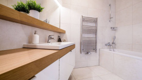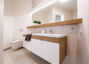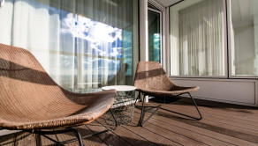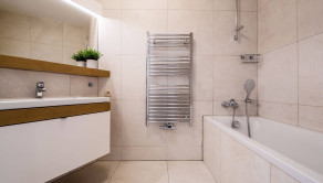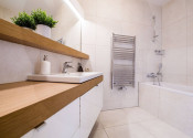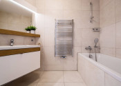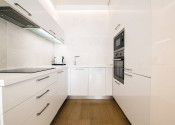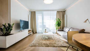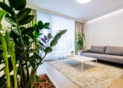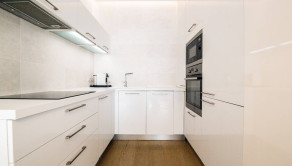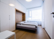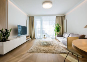 Byt pozostáva zo vstupnej chodby, obývacej izby prepojenej s plne vybavenou kuchyňou, jednej samostatnej spálne, kúpeľne s vaňou a toaletou. K bytu prislúcha lodžia s nádherným výhľadom na hrad a panorámu Bratislavy a parkovacie miesto pre jedno auto v podzemnej garáži (za príplatok 100 Eur/ mesačne).