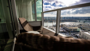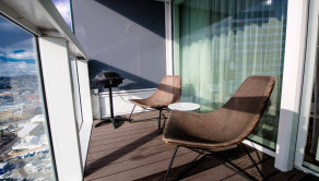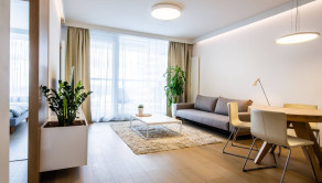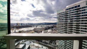 Krásny klimatizovaný 2 -izbový byt na prenájom v Starom meste meste je situovaný na 26. poschodí (35) v novostavbe Panorama City s výťahom.