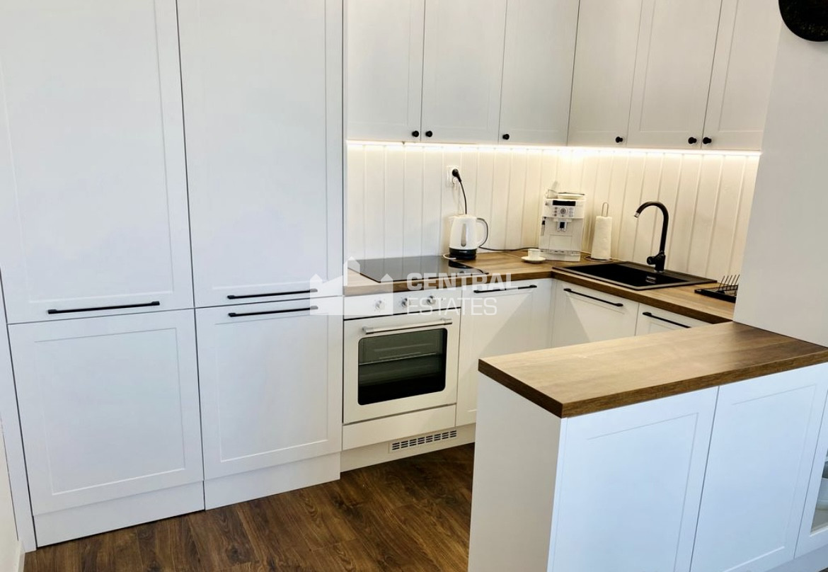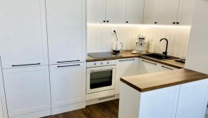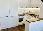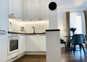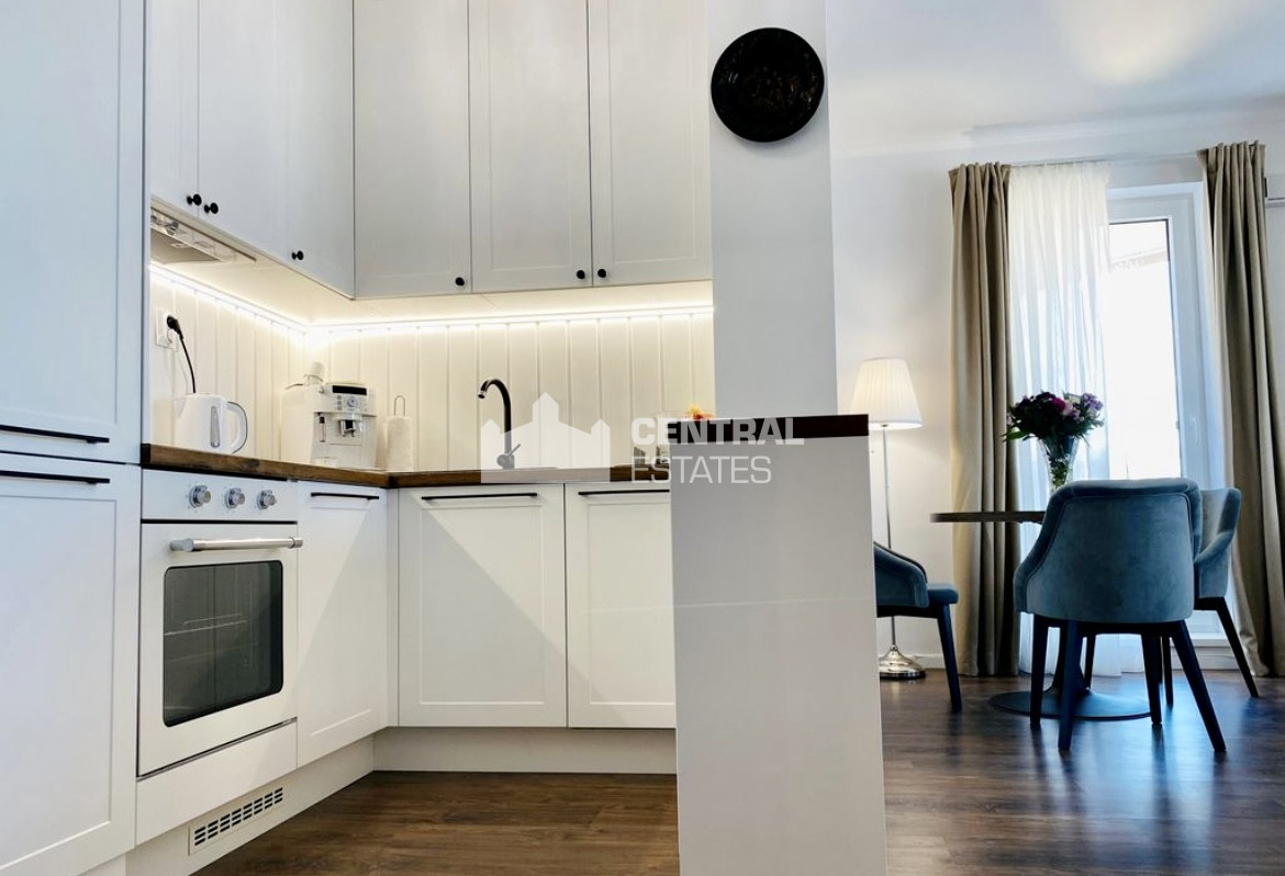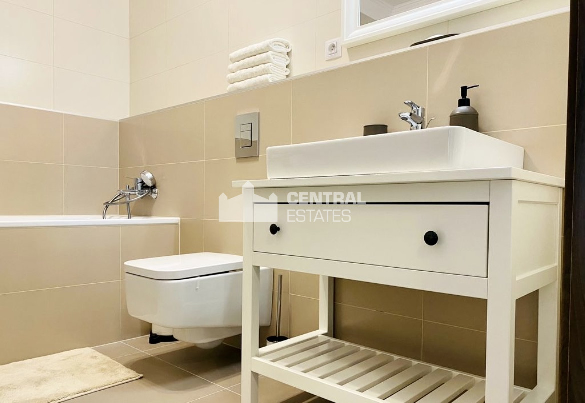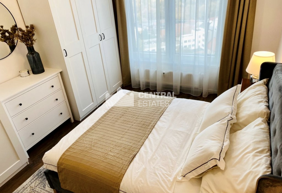 Byt je nový a kompletne zariadený (umývačka riadu, práčka so sušičkou, chladnička s mrazničkou, varná doska, rúra, mikrovlnka, rýchlovarná kanvica, automatický kávovar, TV, vysokorýchlostný internet, komplet riady, taniere, hrnčeky, posteľná bielizeň, uteráky a všetko potrebné). Cena prenájmu: 800 EUR/ mesiac + záloha za energie 250 EUR/ mesiac.