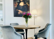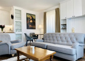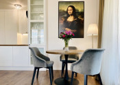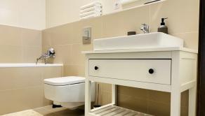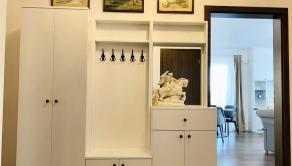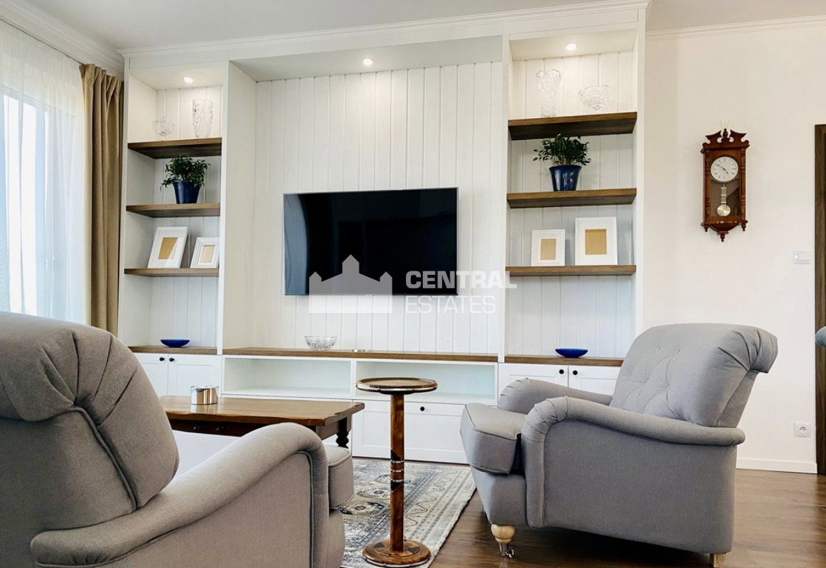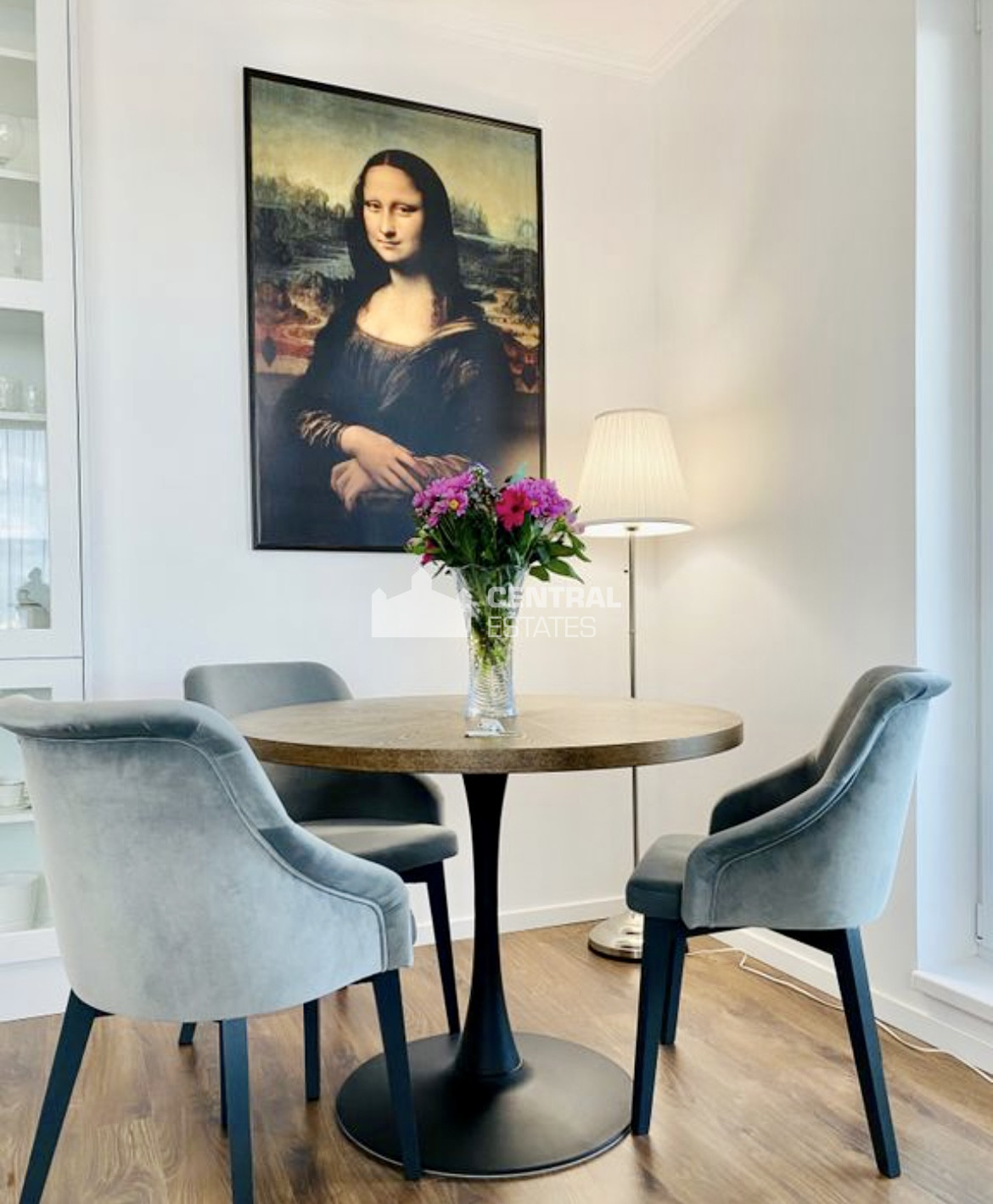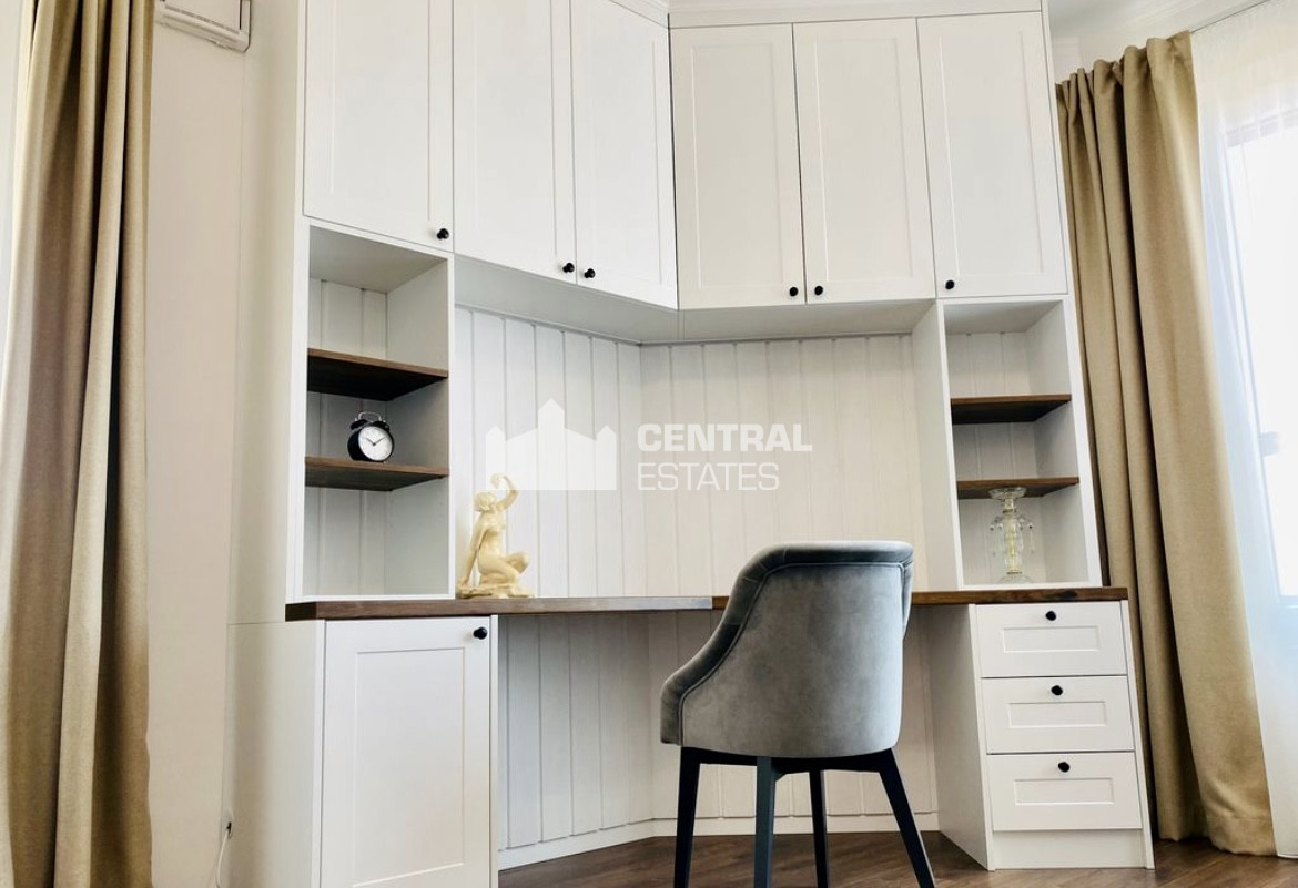 Byt je nový a kompletne zariadený (umývačka riadu, práčka so sušičkou, chladnička s mrazničkou, varná doska, rúra, mikrovlnka, rýchlovarná kanvica, automatický kávovar, TV, vysokorýchlostný internet, komplet riady, taniere, hrnčeky, posteľná bielizeň, uteráky a všetko potrebné). Cena prenájmu: 800 EUR/ mesiac + záloha za energie 250 EUR/ mesiac.
