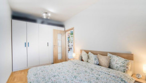Byt pozostáva zo vstupnej chodby, obývacej izby (s 2-dielnou sedačkou, stolikom, obývacou stenou a jedálenským stolom) prepojenej s plne vybavenou kuchyňou, spálne s manželskou posteľou a skriňami, kúpeľne s vaňou, toaletou a práčkou.