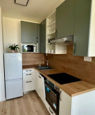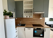 Byt pozostáva zo vstupnej predsiene, obývacej izby s pracovným kútom prepojenej s plne vybavenou kuchyňou a jedálenskou časťou, samostatnej spálne s manželskou posteľou, kúpeľne so sprchovacím kútom, práčkou a toaletou. K bytu prislúcha lodžia a vyhradené parkovacie státie hneď vedľa domu.