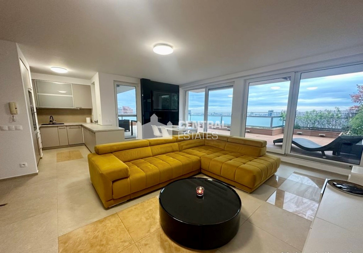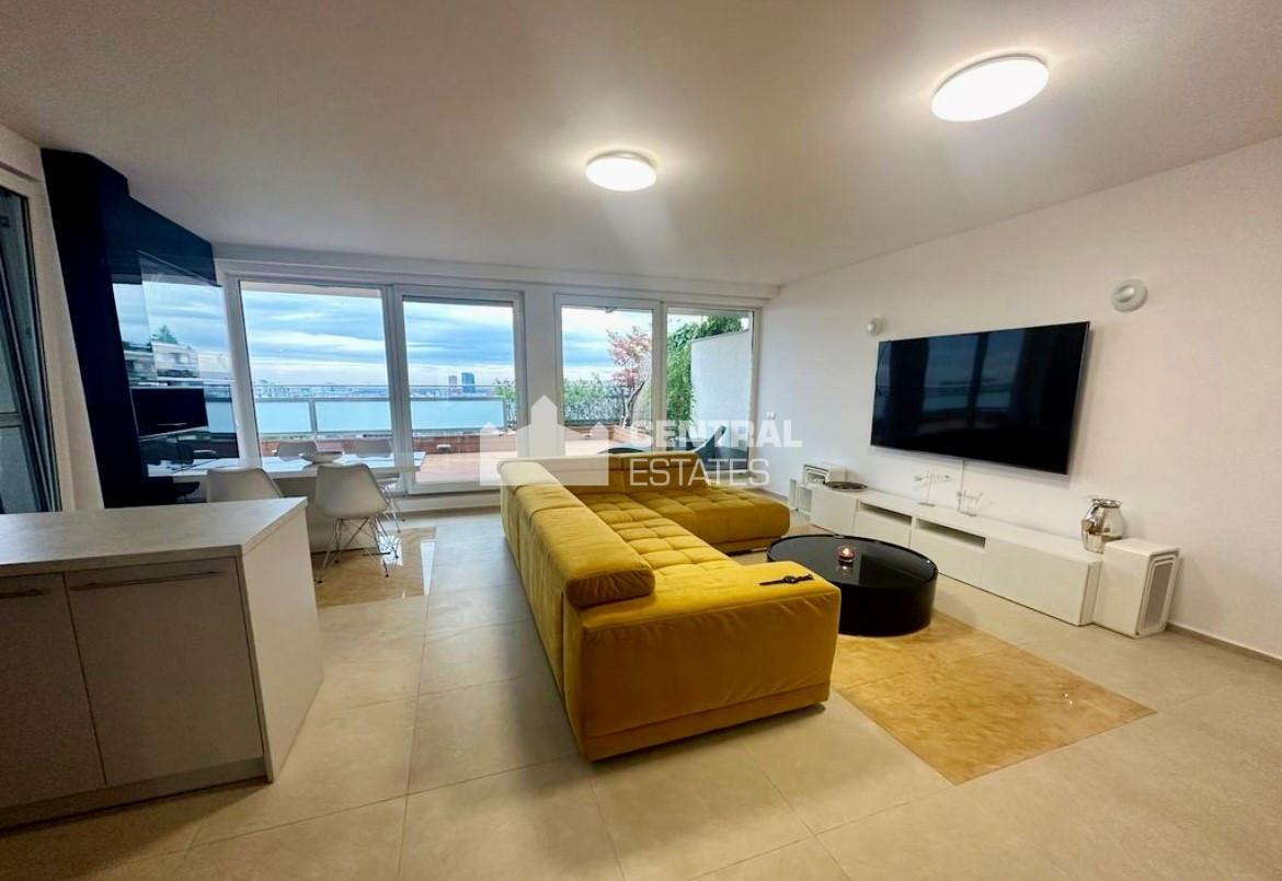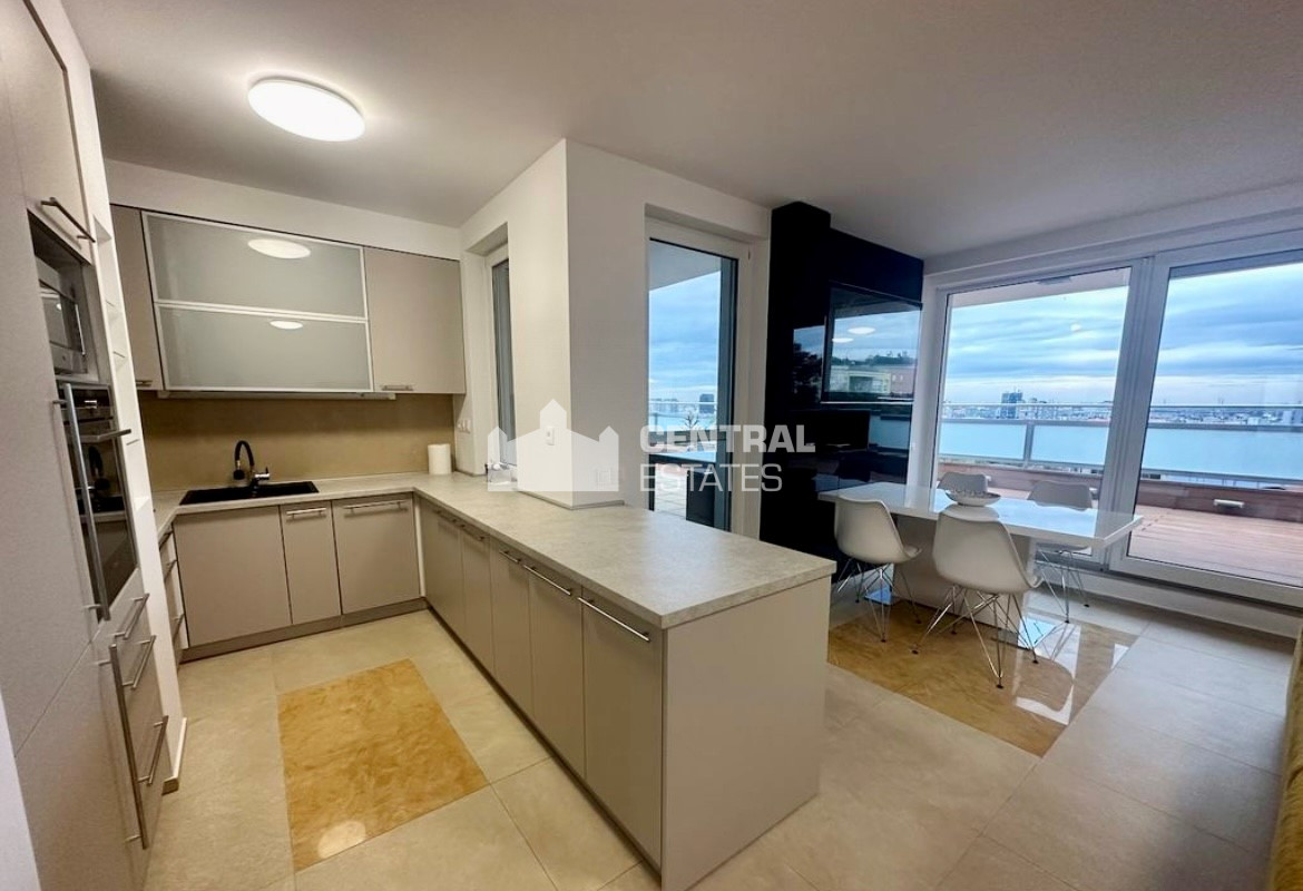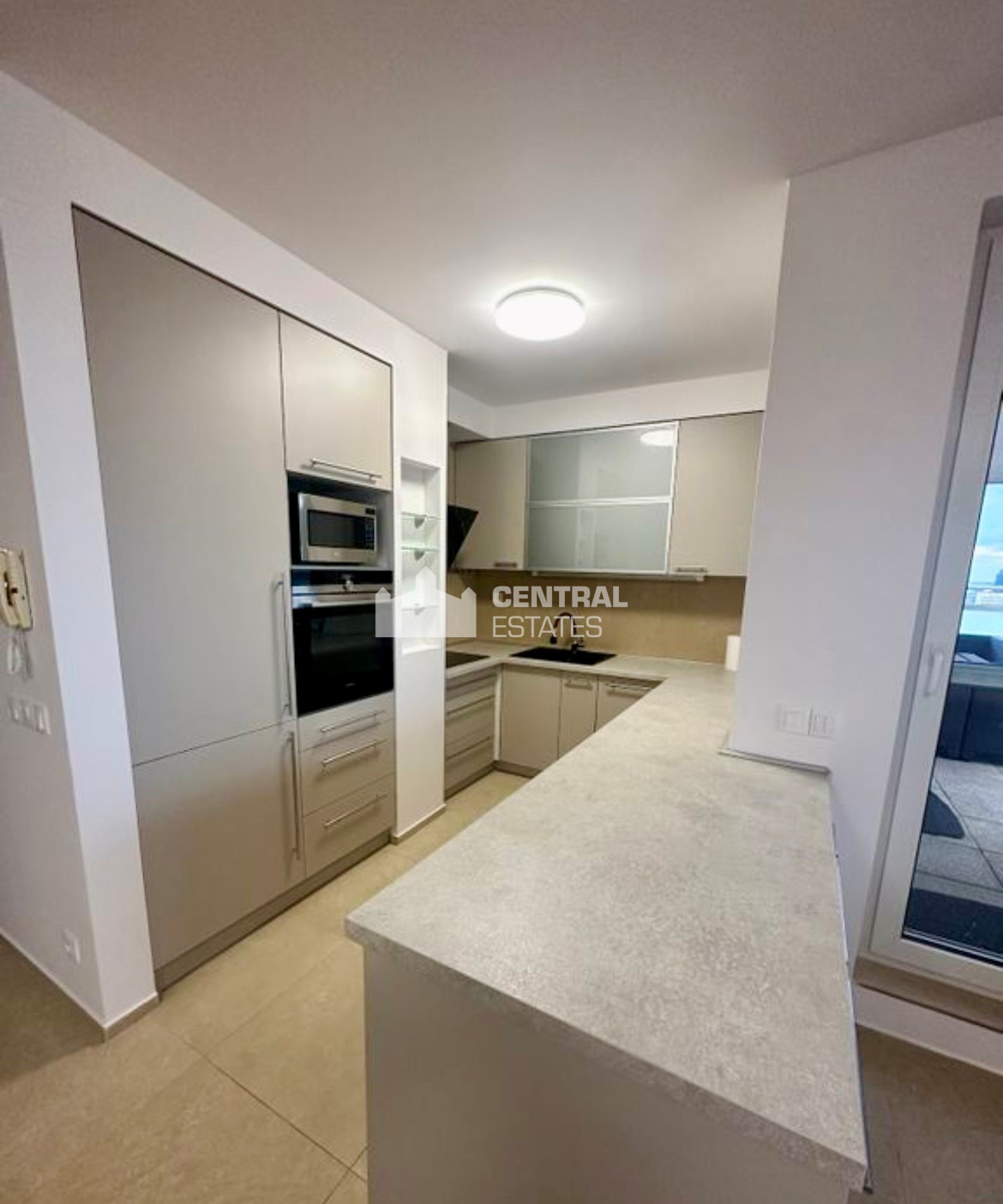 Byt pozostáva zo vstupnej predsiene, priestranného obývacieho priestoru prepojeného s plne vybavenou kuchyňou, jedálňou, dvoch samostatných izieb (spálňa a detská/pracovňa), kúpelne so sprchou, vaňou, toalety a samostatnej toalety. K bytu prislúcha terasa s prístupom po obvode celého bytu.