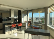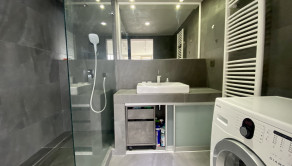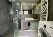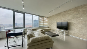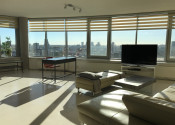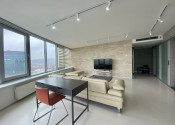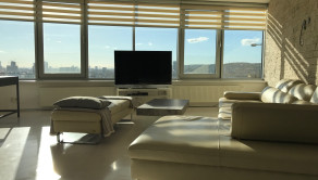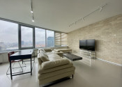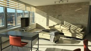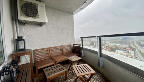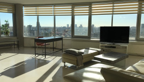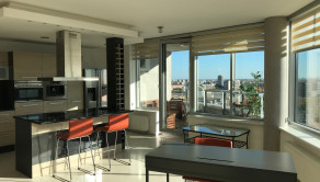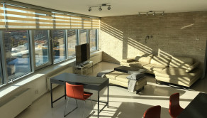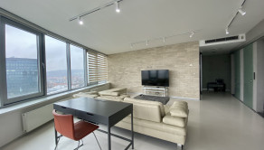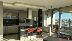 Veľkometrážny nadštandardne zariadený 2-izbový byt na prenájom v Novom meste je situovaný na 20. poschodí (22) v novostavbe s výťahom. Pozostáva zo vstupnej chodby, priestrannej obývacej izby prepojenej s plne vybavenou kuchyňou a jedálenskou časťou, jednej samostatnej spálne, kúpeľne so sprchovým kútom a toalety. K bytu prislúcha lodžia (9 m2) s krásnym panoramatickým výhľadom na Bratislavu. Byt je zariadený vo vysokom štandarde kvalitným nábytkom a spotrebičmi. Kuchynská linka bola vyhotovená na mieru, pričom boli použité kvalitné materiály ako kameň žula z ktorého je vyhotovená pracovná doska a zástena kuchyne. Do kuchynskej linky boli nainštalované vstavané spotrebiče značky TEKA ( automat. kávovar, kompaktná rúra s mikrovlnou rúrou, indkučná varná doska, odsávač pár, umývačka riadu), americká chladnička s výrobníkom ľadu a dávkovačom vody a kameninové umývadlo. V spálni sa nachádza moderný presklený šatník na mieru a kvalitný taliansky koberec, taktiež vyrobený na mieru. Na chodbe sa nachádza vstavaná skriňa s botníkom. K bytu prislúcha garážové státie pre jedno auto v podzemenj garáži. Energie (350 Eur) vrátane internetu a KTV nie sú zahrnuté v nájme.