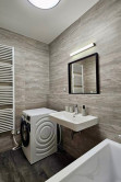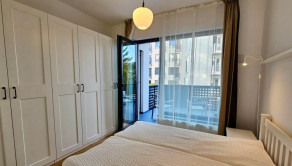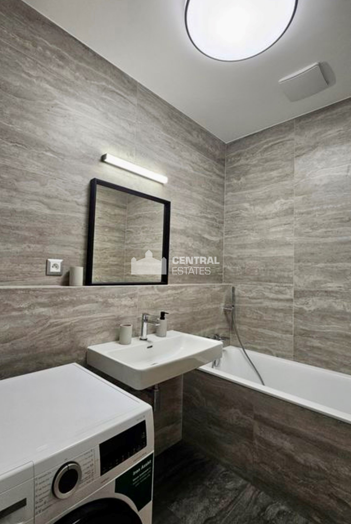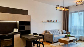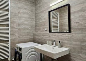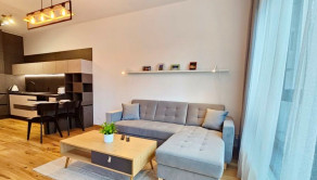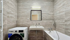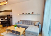 Byt pozostáva zo vstupnej predsiene so zabudovaným šatníkom a úložným priestorom, priestrannej obývacej izby (vybavená rozťahovacím gaučom, stolíkom, komodou s 55" televízorom s rozšírenou ponukou TV kanálov a optickým internetom) prepojená s modernou kuchyňou vybavenou všetkými potrebnými spotrebičmi (chladnička, umývačka riadu, rúra, indukčná varná doska, mikrovlnka, hriankovač, varná konvica), samostatnej spálne s manželskou posteľou, kvalitnými matracmi, nočnými stolíkmi a šatníkovými skriňami s veľkým úložným priestorom, kúpeľne s vaňou, umývadlom, kombinovanou práčkou so sušičkou a podlahovým vykurovaním a samostatnej toalety s umývadlom.