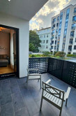 K bytu prislúcha veľká terasa s rozlohou 3m x 3m s výhľadom na zeleň do tichého vnútrobloku orientovanom smerom na Prezidentskú záhradu. Terasa je čiastočne prekrytá.