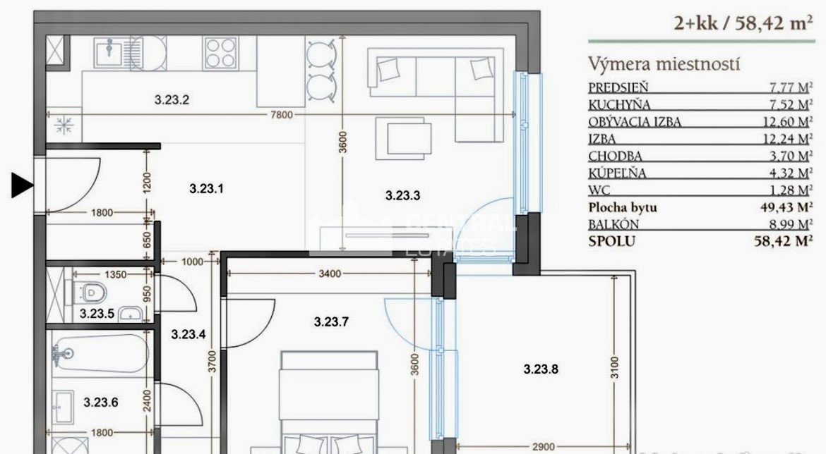 Cena prenájmu: 800 € + 200 € energie a poplatky vrátane TV a internetu + 100 € garážové státie.