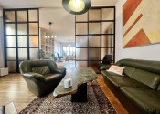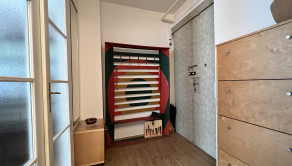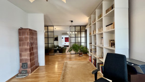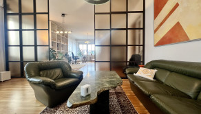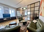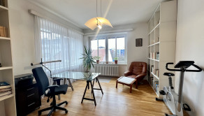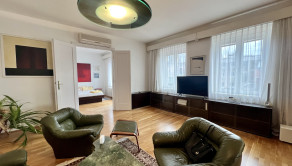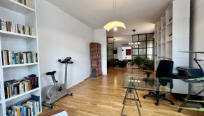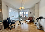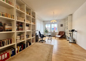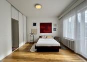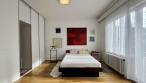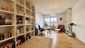 Byt pozostáva zo vstupnej haly so vstavanými skriňami, priestrannej obývacej izby prepojenej presklenou stenou so slnečnou pracovňou, samostatnej plne vybavenej kuchyne, spálne s manželskou posteľou, menšej izby, kúpeľne so sprchovacím kútom a toalety. K bytu prislúcha balkón s príjemným výhľadom na okolie. Byt je orientovaný na juhozápad, má vlastný kotol, je veľmi svetlý, príjemný s výsokými stropmi a prenajíma sa kompletne zariadený. Parkovanie je bezproblémové verejné v okolí bytového domu.