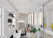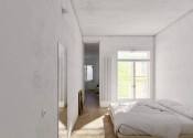 Byt pozostáva zo vstupnej haly s množstvom úložných priestorov a s hosťovskou toaletou, kuchyne adetskej izby. Moderná, prakticky riešená kuchyňa disponuje zabudovanými spotrebičmi renomovaných značiek (umývačka, multifunkčná rúra – kombinovaná s mikrovlnnou, varná platňa, chladnička s mrazničkou, práčka so sušičkou), odkladacími priestormi a dizajnovým kontajnerom na separovaný odpad. Ďaľšou miestnosťou v byte je jedáleň s prístupom na balkón (3,6 m2). Nájomca určite ocení prípravu na domáce kino - veľká plocha steny pripravená na zážitkové premietanie. Z obývacej izby je prístup do spálne s kúpeľňou a s toaletou. Spálňa má šatník a vlastný balkón (2 m2) orientovaný na východ. Detská izba s poschodovou posteľou a veľkým pracovným stolom má svoju kúpeľňu so sprchovacím kútom a s prístupom na malú loggiu orientovanú na sever.