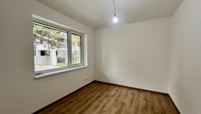 Byt pozostáva zo vstupnej predsiene s priestorom na vstavanú skriňu, veľkej obývacej izby s výstupom na terasu prepojenej s kuchynskou a jedálenskou časťou, dvoch samostatných izieb- jedna s francúzskym oknom, kúpeľne s vaňou a toalety. Byt je zariadený v štandarde s predprípravou na vonkajšie elektrické žalúzie. V byte je podlahové kúrenie. Prislúcha k nemu veľká terasa a predzáhradka (28m2) a je možné si k nemu dokúpiť dve garážové státia.