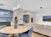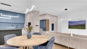 Samostatný vstup pre 2 byty, pričom na poschodí 1PP sa nachádza len jeden byt. Byt je čiastočne zariadený. Dispozične pozostáva zo vstupnej časti, haly, obývacej izby, ktorá je prepojená s jedálňou a plne vybavenou kuchynskou linkou s prémiovými spotrebičmi SIEMENS (chladnička, mraznička, mikrovlnka, digestor, indukčná varná doska, umývačka riadu, rúra). Obývačka je vybavená veľkým TV.