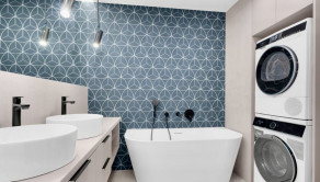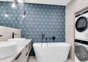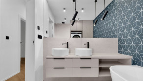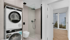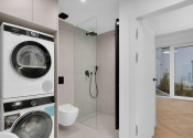 Byt má tri samostatné izby - dve detské izby a rodičovskú spálňu ( z toho všetky sú vybavené vstavanými skriňami). K dispozícii je komfortná kúpeľňa s vaňou, 2x umývadlom, sprchovacímm kútom – WALK IN, vrátane práčky a sušičky. WC je samostatné a doplnené umývadlom i bidetovou spŕškou.