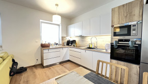 - veľká obývacia izba prepojená s plne vybavenou kuchyňou