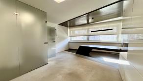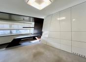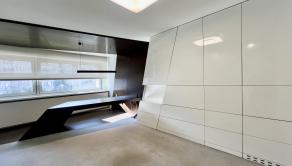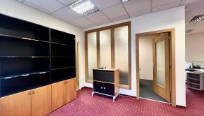 Priestor naľavo pozostáva z troch samostatných kancelárií a sociálnych zariadení. Je o rozlohe 114m2 a je po novšej rekonštrukcii so sklenenými priečkami a dizajnovými prvkami.