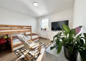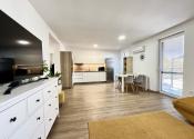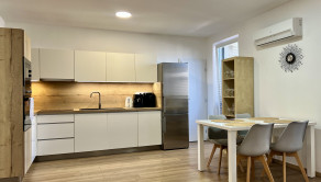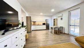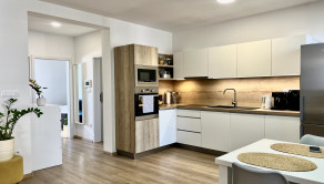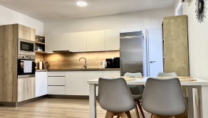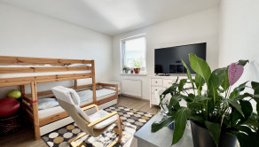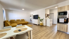 - veľká obývacia izba prepojená s plne vybavenou kuchyňou a jedálenskou časťou