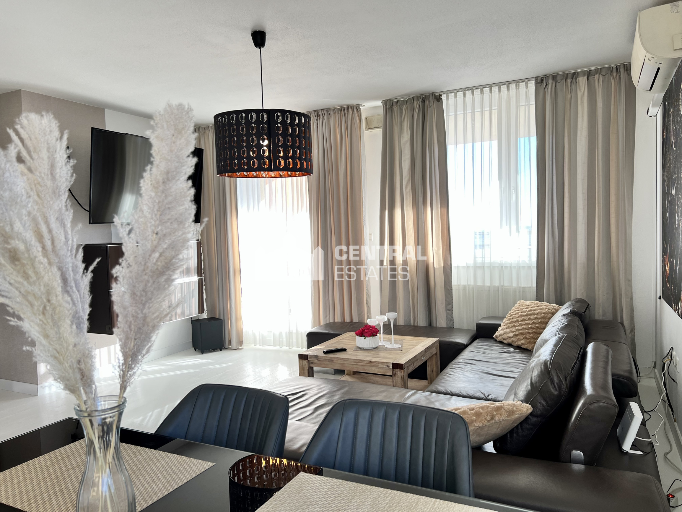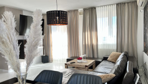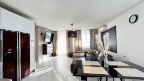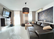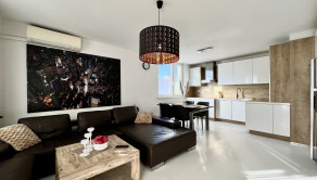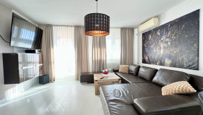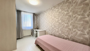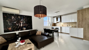 Byt pozostáva zo vstupnej chodby so vstavanými skriňami, priestrannej obývacej izby prepojenej s plne vybavenou kuchyňou a jedálenskou časťou, rodičovskej spálne, dvoch samostatných nepriechodných izieb, skladovej miestnosti, kúpeľne s vaňou, sprchovacím kútom a samostatnej toalety. Je klimatizovaný.