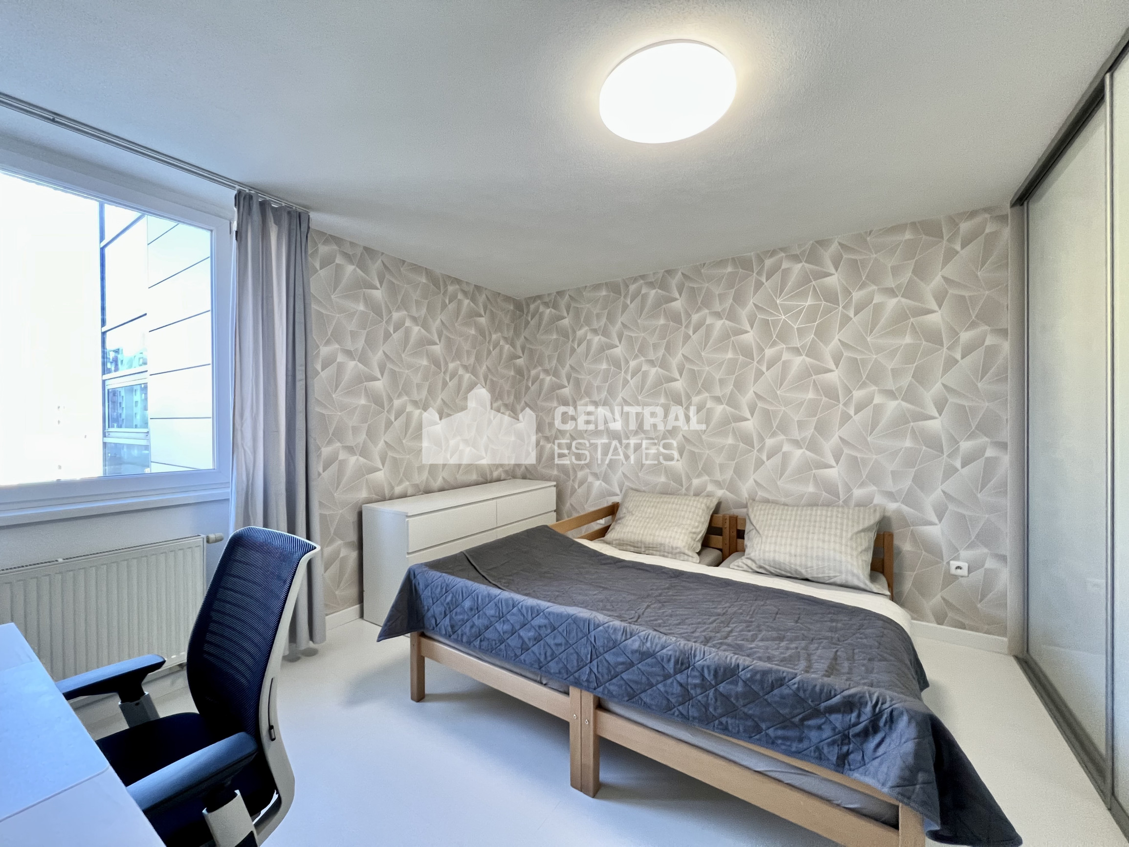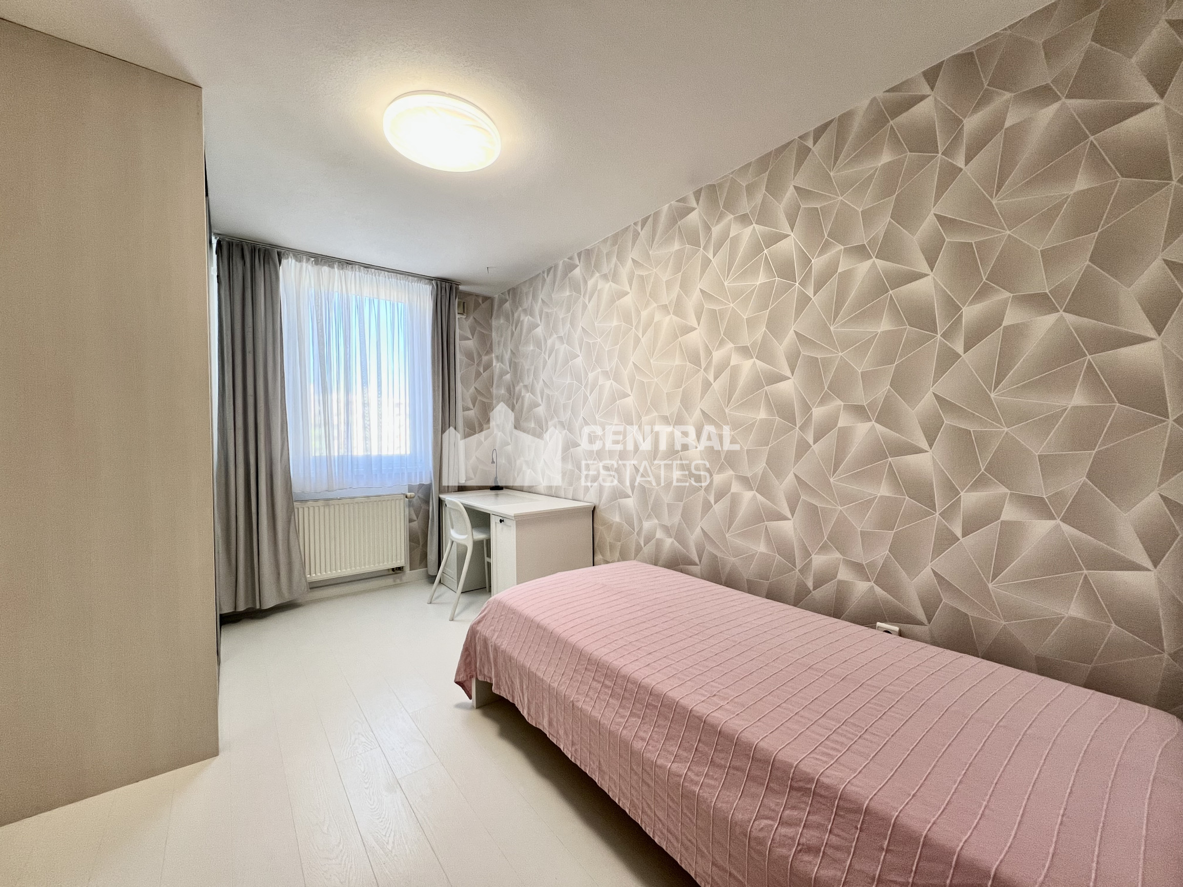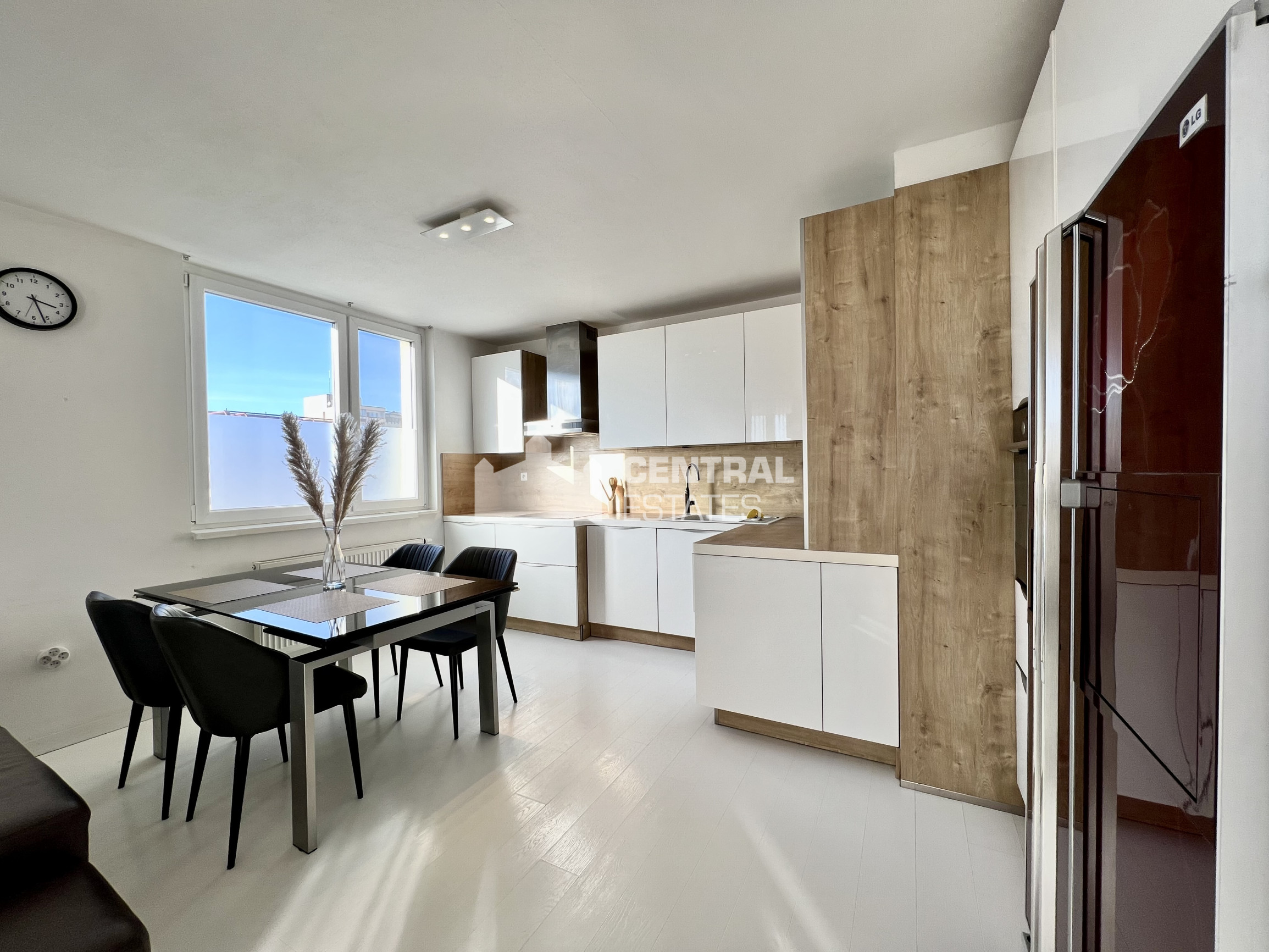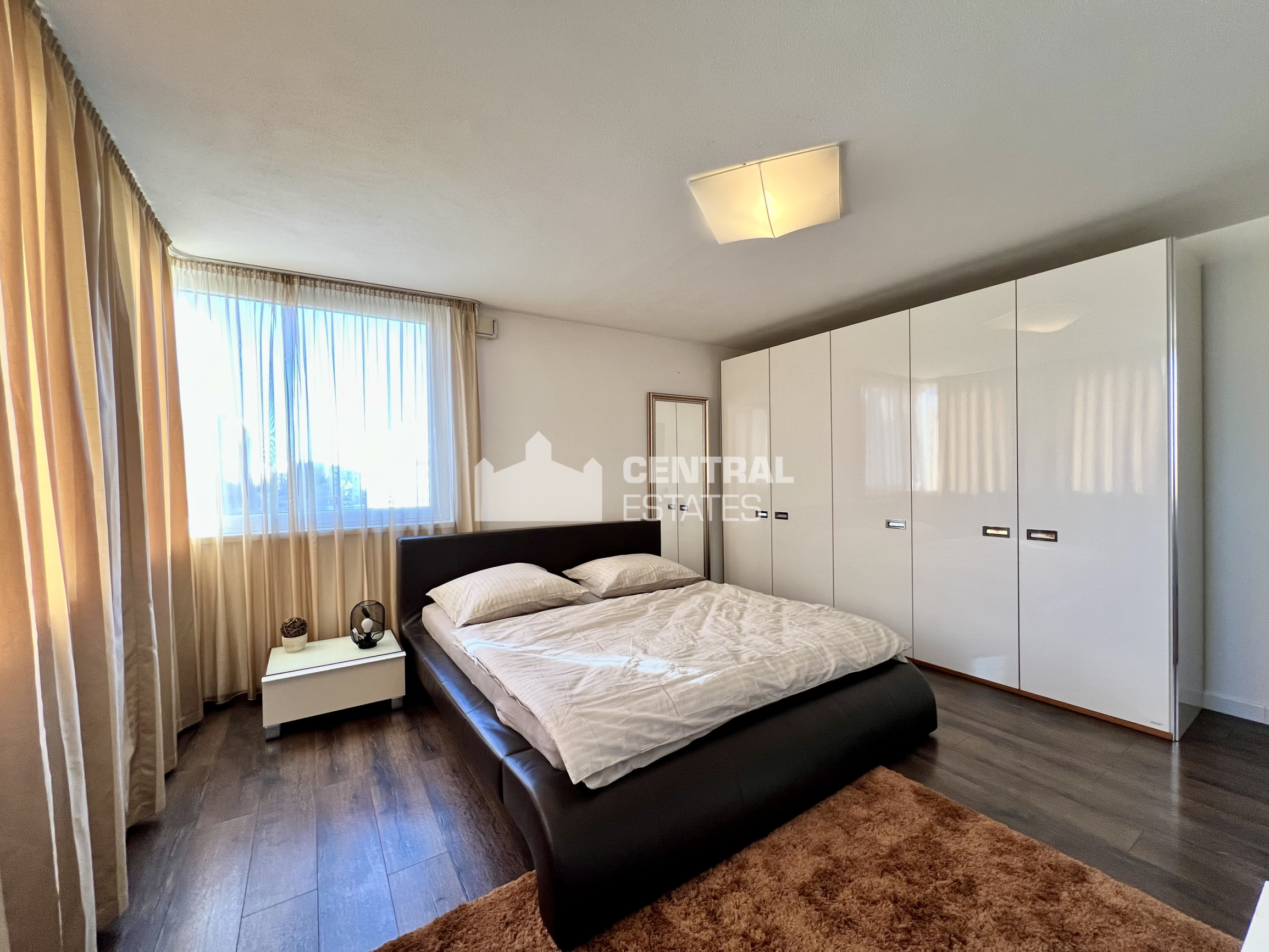 Central Estates Vám ponúka na prenájom veľkometrážny moderný 4- izbový byt v Bratislave- časť Karlova Ves. Byt je situovaný na 8. poschodí (z 20) v novostavbe s výťahom. Úžitková plocha bytu je 109.71 m2 plus balkón 8.91 m2.