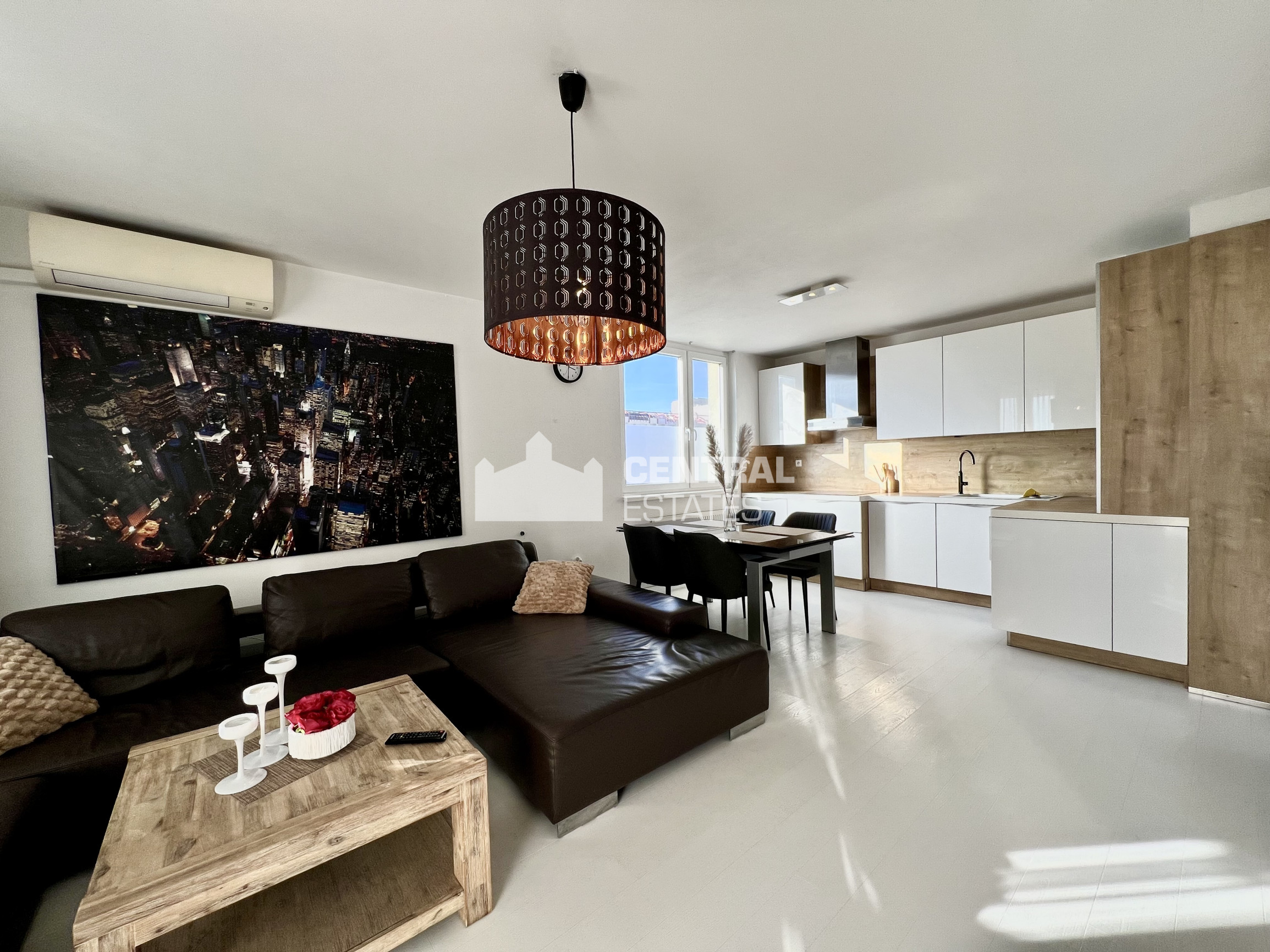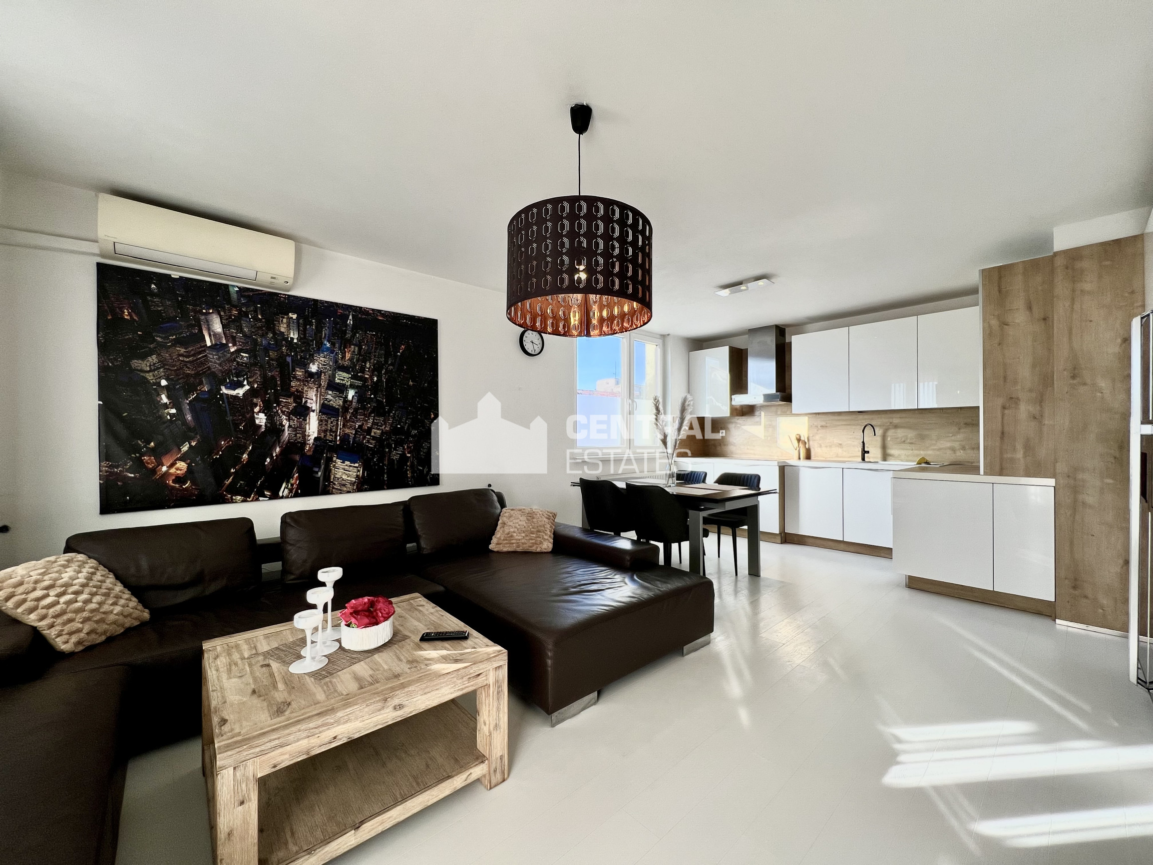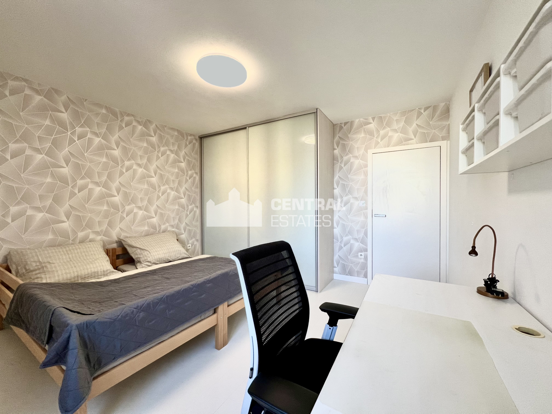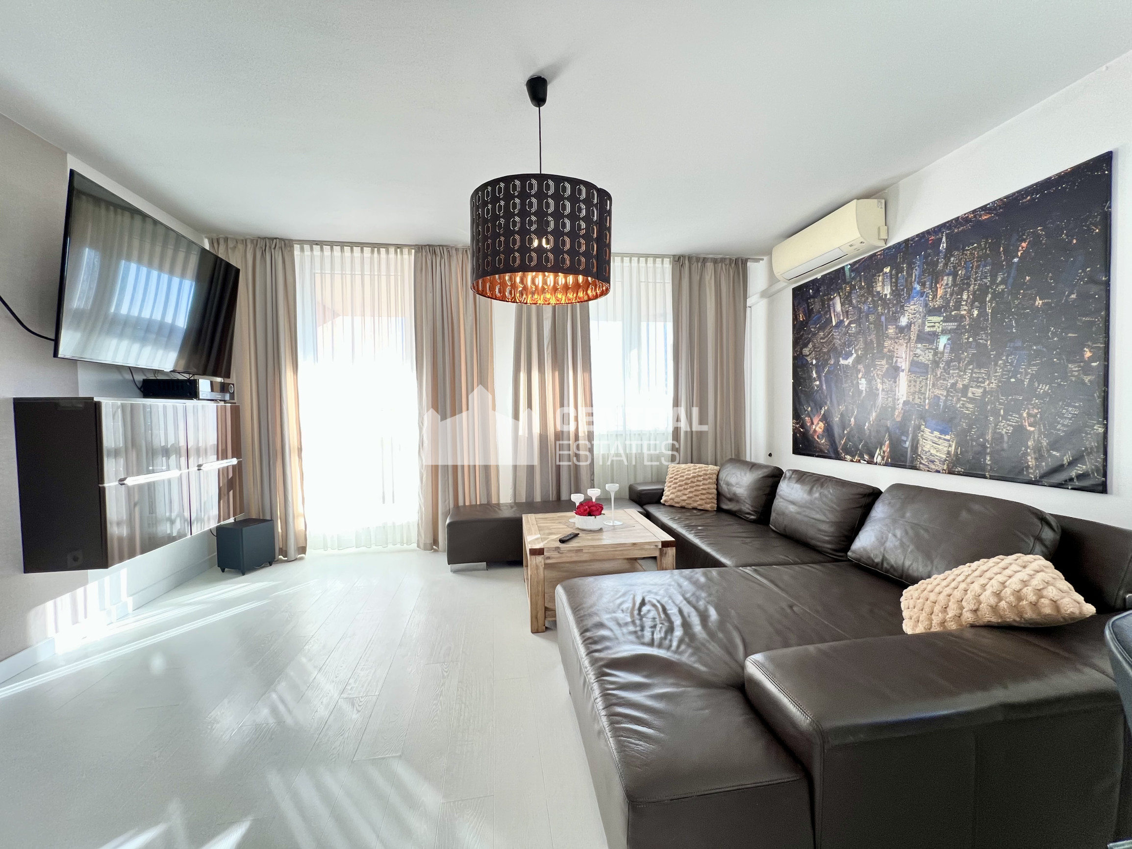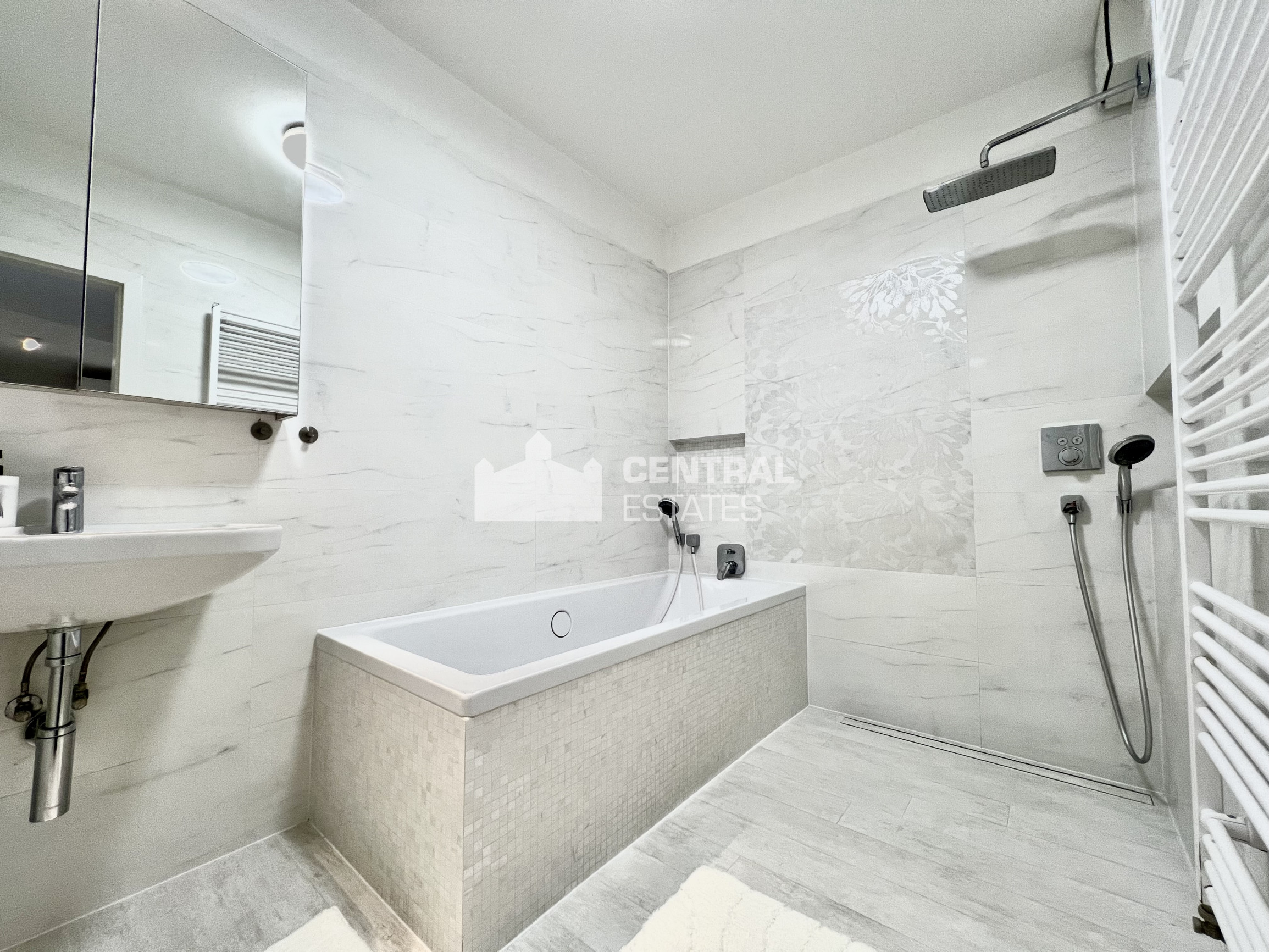 Central Estates Vám ponúka na prenájom veľkometrážny moderný 4- izbový byt v Bratislave- časť Karlova Ves. Byt je situovaný na 8. poschodí (z 20) v novostavbe s výťahom. Úžitková plocha bytu je 109.71 m2 plus balkón 8.91 m2.