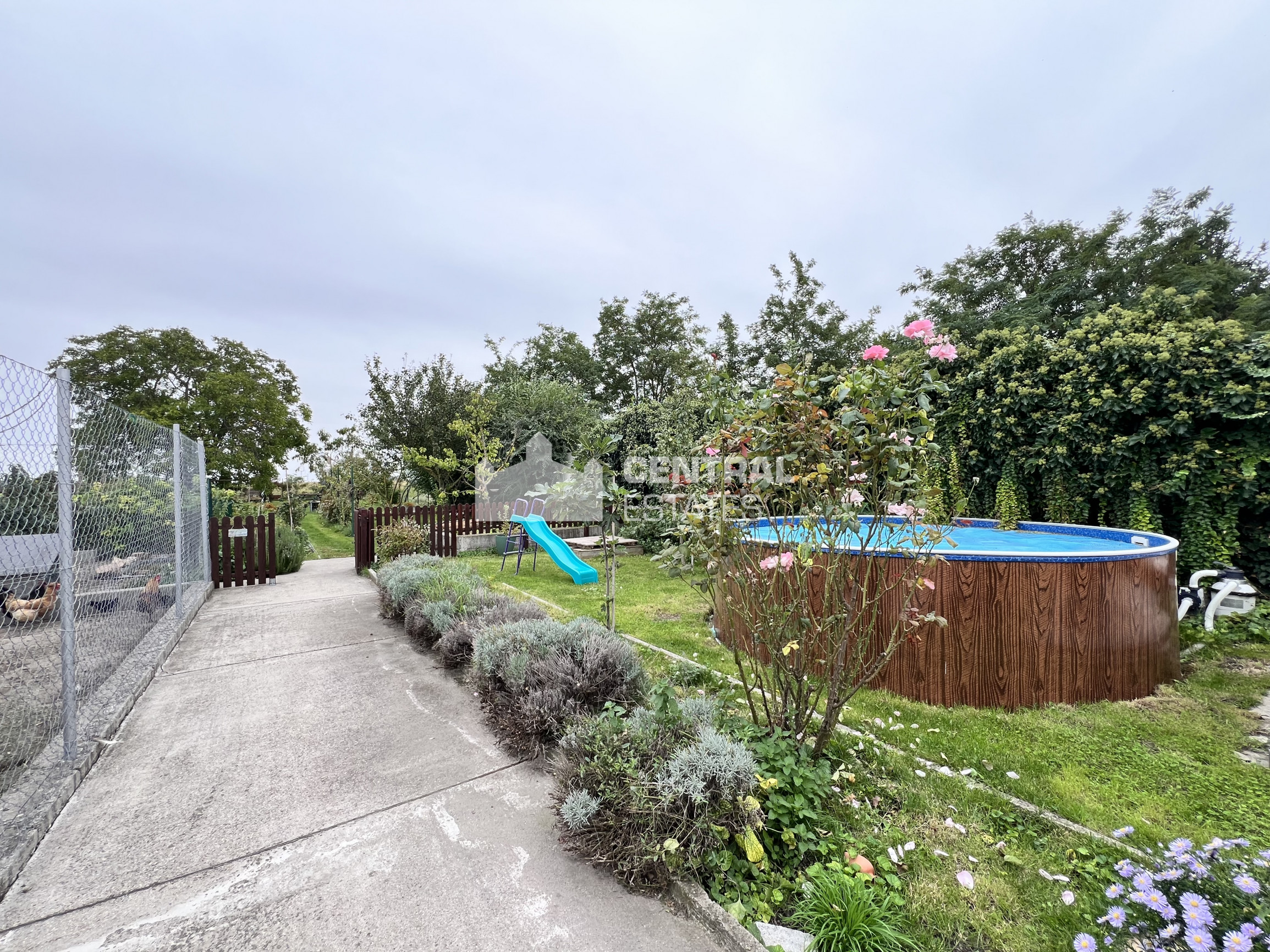 Dom disponuje priestranným pozemkom a veľkou záhradou. Na pozemku sú dve studne, hospodárske budovy (40m2), bývalá garáž (21m2), ktorá slúži momentálne ako dieľňa, pivnica a dve prekryté terasy. K dispozícii je parkovanie pre tri autá. Dve autá na pozemku vedľa domu a jedno auto pred domom.