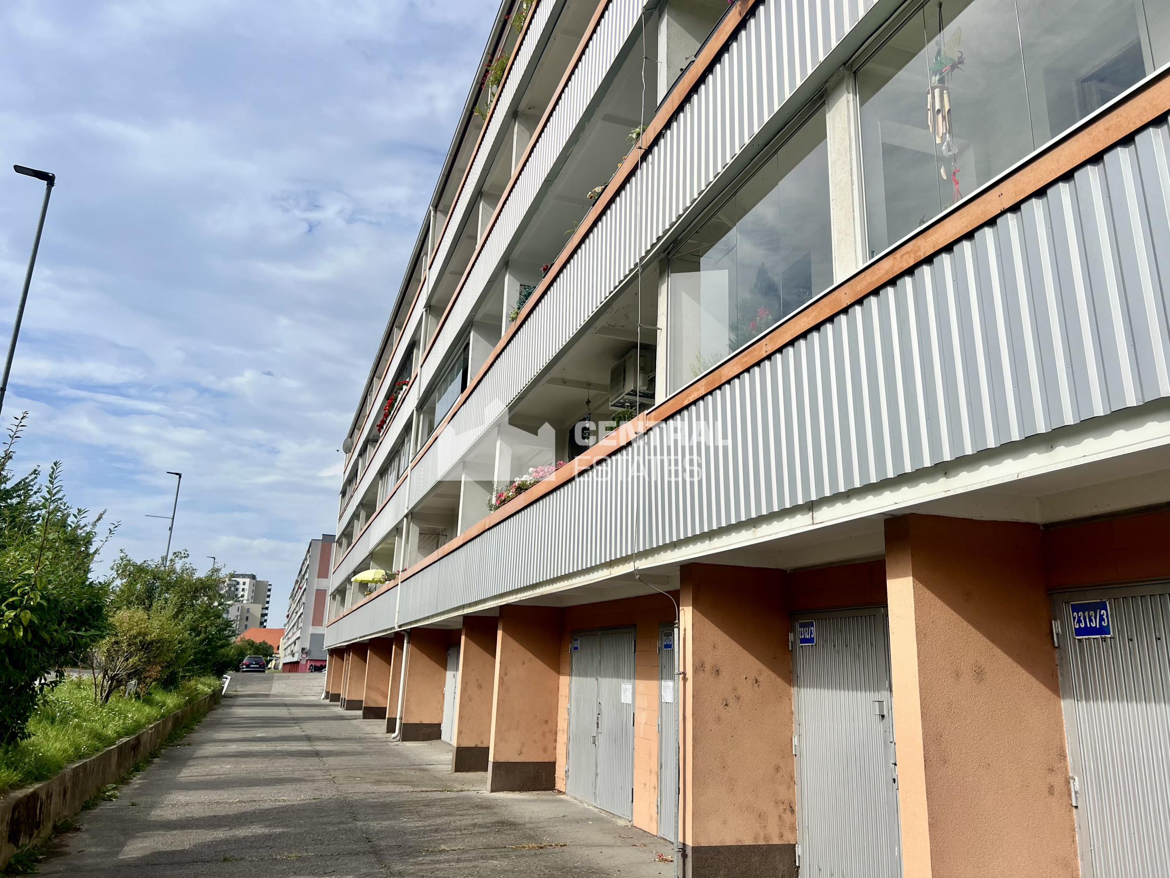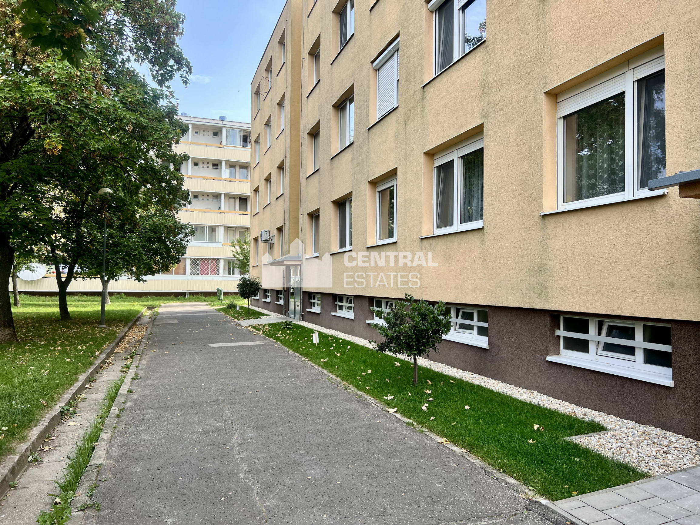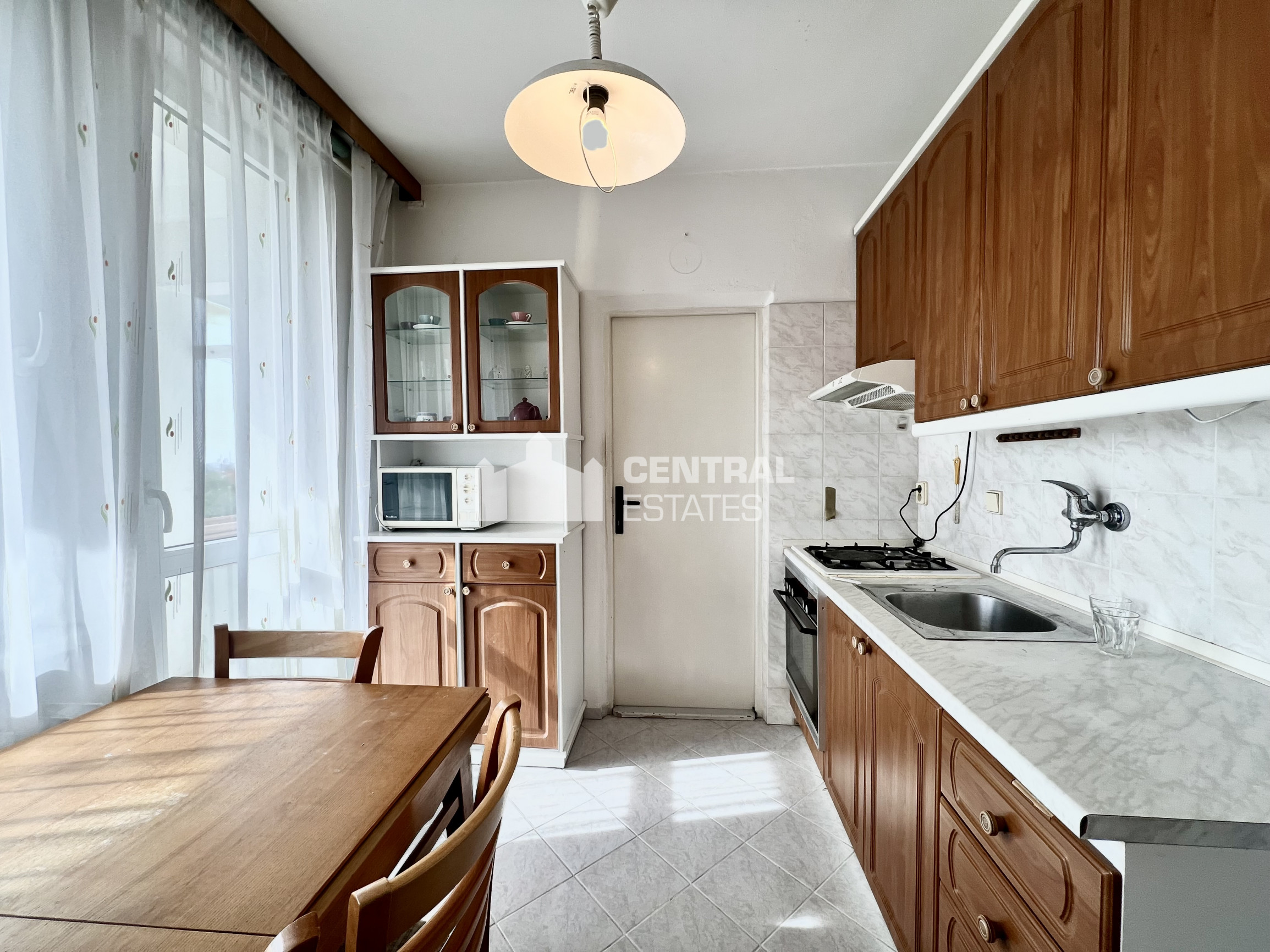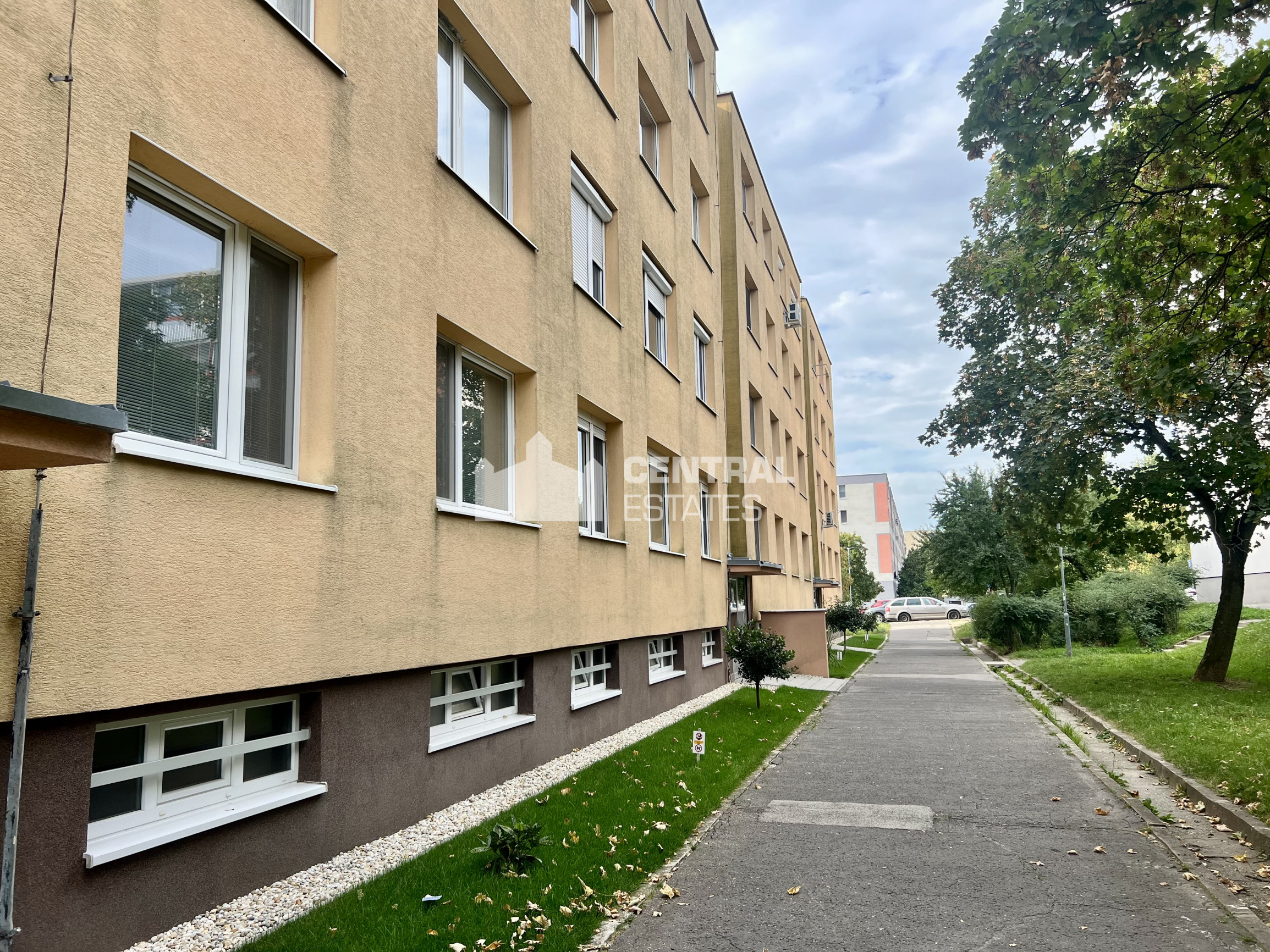 Byt pozostáva zo vstupnej chodby, slnečnej obývacej izby, hlavnej spálne, samostatnej kuchyne so špajzou, dvoch ďalších izieb, kúpeľne s vaňou a toalety. Pozdĺž obývacej izby a kuchyne sa tiahne lodžia, ktorá je prístupná z oboch izieb. Byt je klimatizovaný, boli v ňom vymenené plastové okná, inak je v pôvodnom stave. Je klimatizovaný. Parkovanie je verejné v okolí domu. K bytu je možné po dohode prenajať si garáž. Bytový dom bol dávnejšie zateplený.