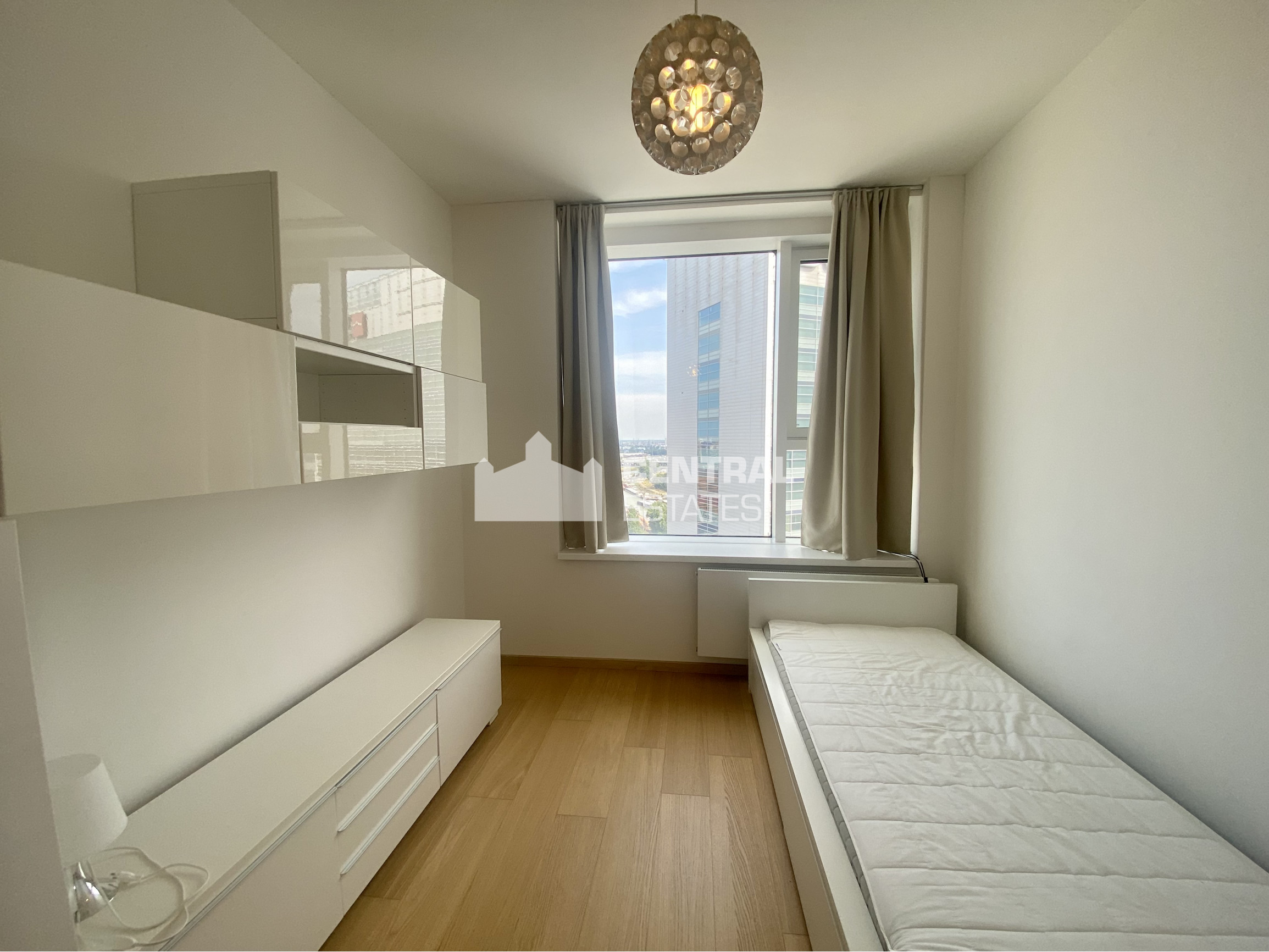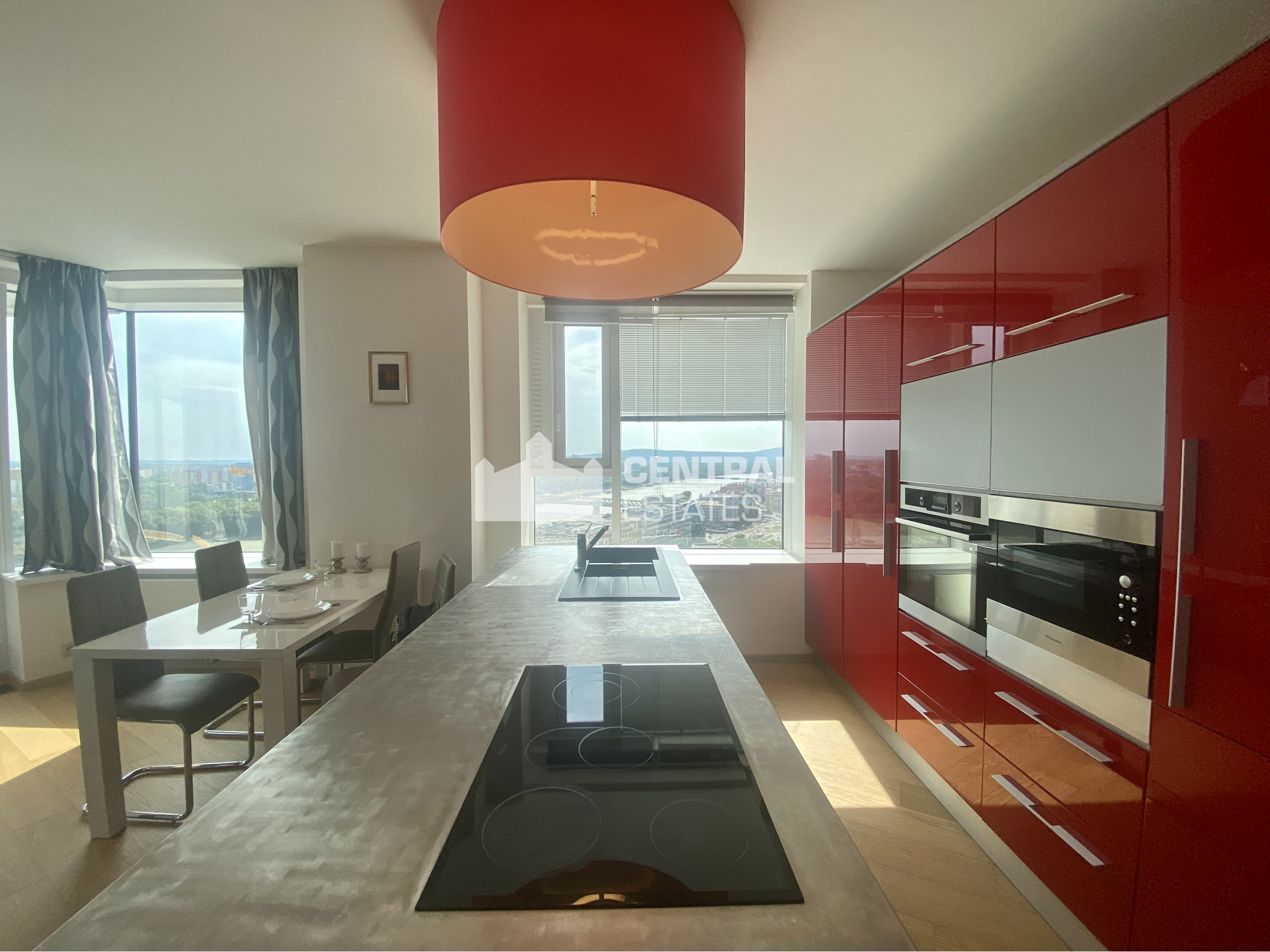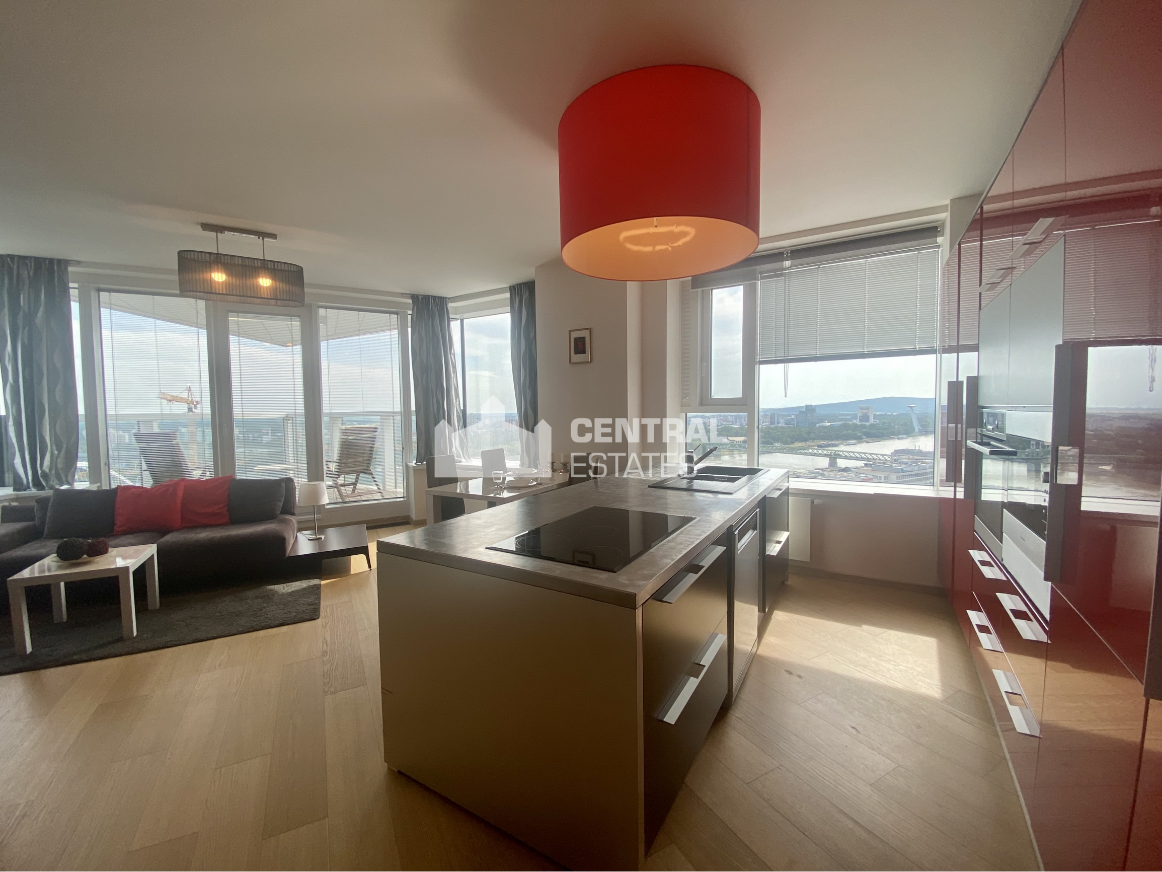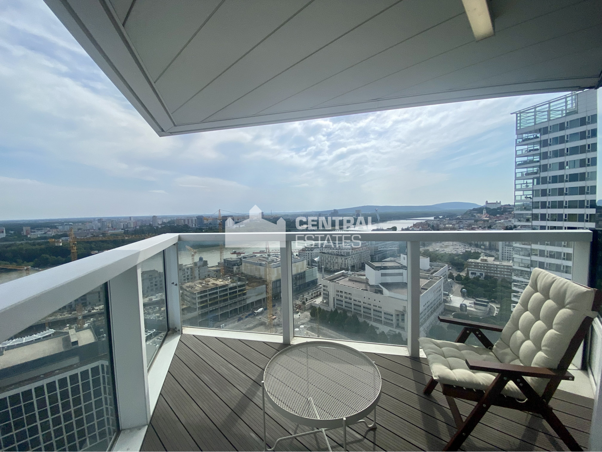 Nadštandardný klimatizovaný 4- izbový byt na prenájom v Starom meste je situovaný na 26. (33) poschodí v novostavbe Panorama City s výťahom.